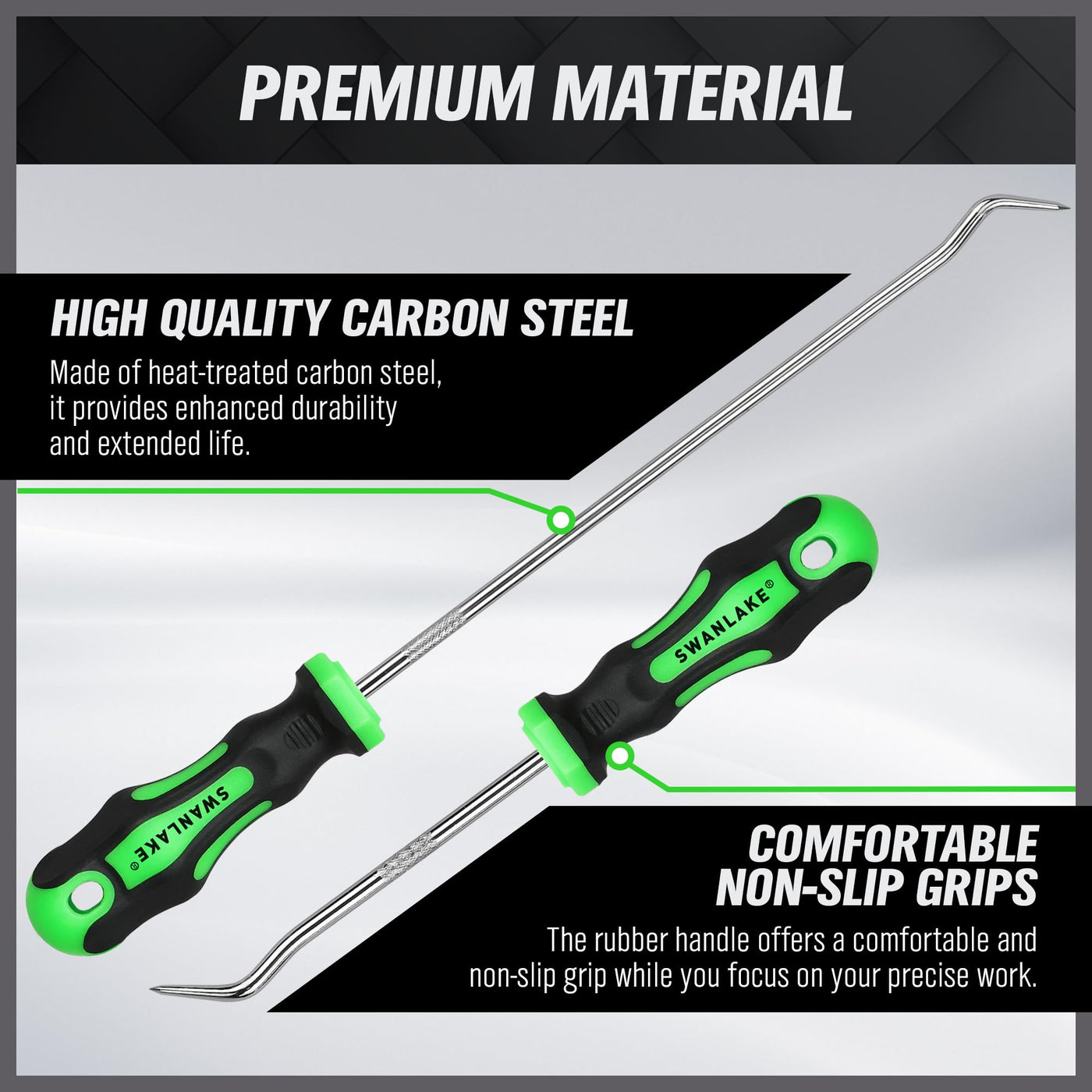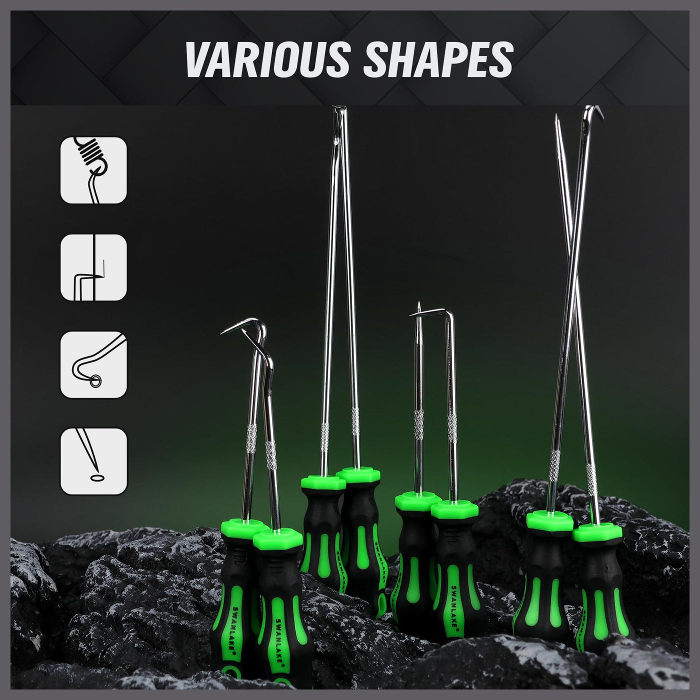 - PREMIUM QUALITY - Made of heat-treated CR-V steel and chrome vanadium steel shafts, this 8-piece Mini Hook and Pick Set ensures durability and sharpness. Perfect for precision tasks, it stands up to heavy use in automotive and mechanical work