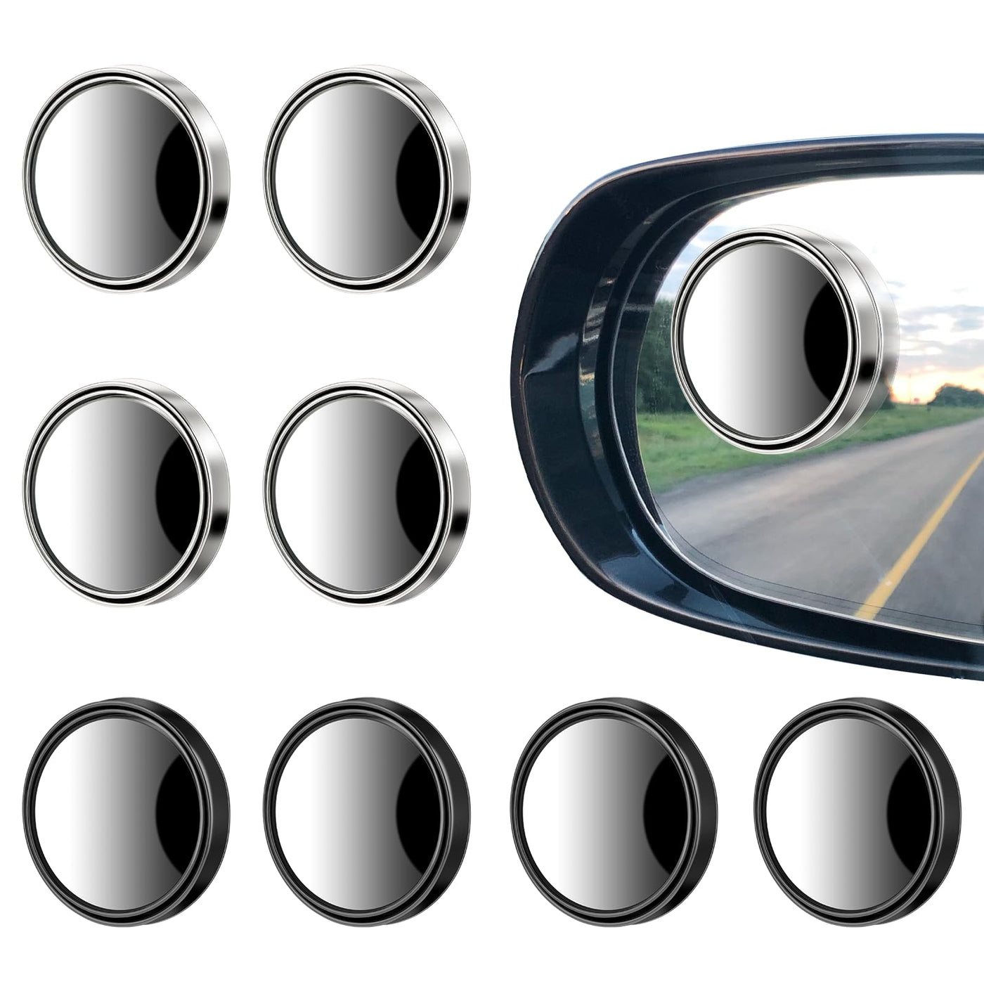 8Pcs Blind Spot Mirrors for Car 1.97’’ Round HD Convex Mirror Angle Adjustable HD Glass Round Side Rear View Convex 360° Wide Angle Side View Mirror with ABS Housing for SUV Trucks Motorcycles