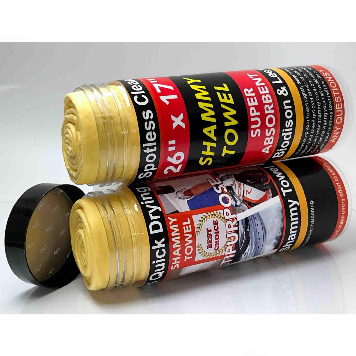 - 2Large Size(26x17) and Easy to Cut The large size(26x17) of the car drying shammy can be cutted into two small size(17'' x 13'') for cleaning your car's mirrors and seats.Car drying shammy is perfect for drying your lovely car's surface
