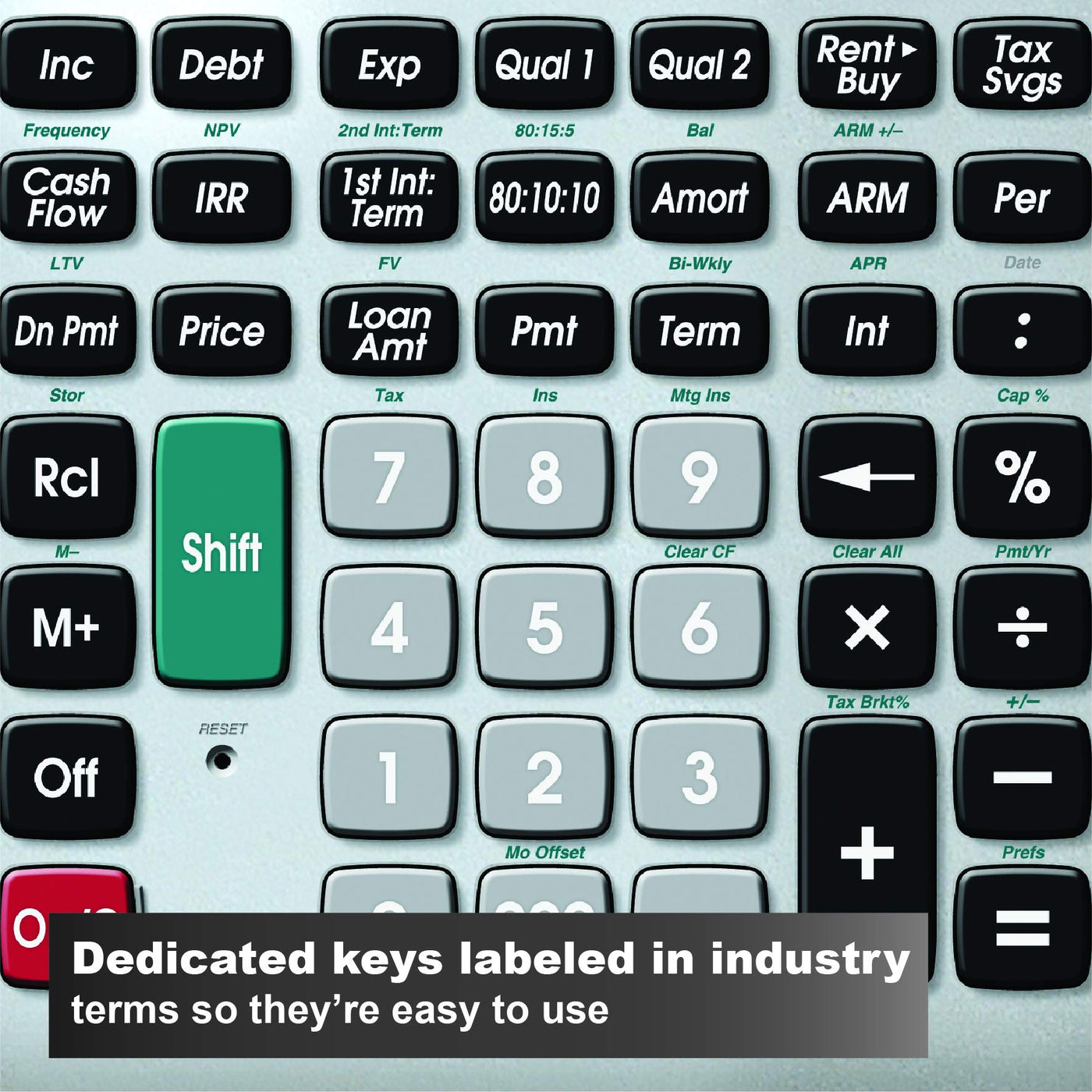 • SPEAKS YOUR LANGUAGE with keys clearly labeled in residential mortgage finance terms like Loan Amt, Int, Term, Pmt; this industry-standard calculator is super easy to use on all realty financing matters from finding a loan that works for your client to considering trust deeds investments, or finding remaining balances or balloon payments and more