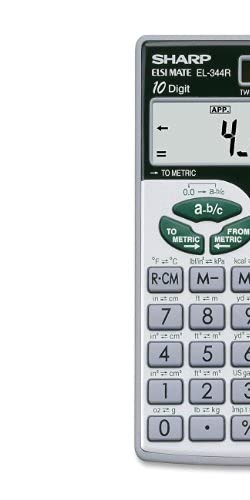 The Sharp EL344RB 10-Digit Calculator with Punctuation provides you quick and simple calculations without those extra confusing features. This twin-powered calculator also features a metric converter with 44 built-in conversions. The extra large 10-digit fraction display and colored conversion keys make the EL344RB easily operable. It performs all the basic functions - addition, subtraction, multiplication and division and also includes square root, sign change, and percent keys. This small but powerful calculator has a 3-key memory and will automatically turn off if left on unused.