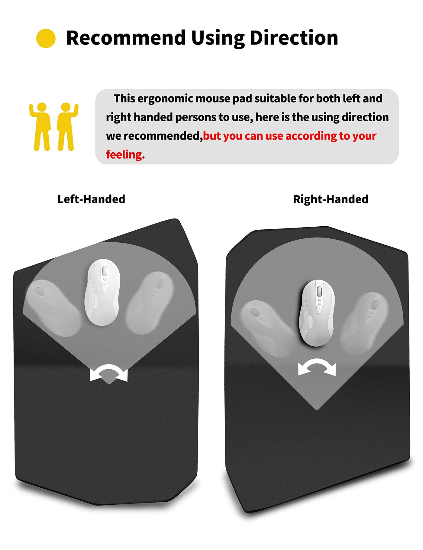 - Ergonomically design to prevent pain --- We designed the tilt angle on the surface of the mouse pad, about 8 degrees, so that your wrist and arm can keep maintaining in proper alignment when you using mouse in long hours, your wrist will be no longer stressed. Avoid pain syndromes like carpal tunnel.