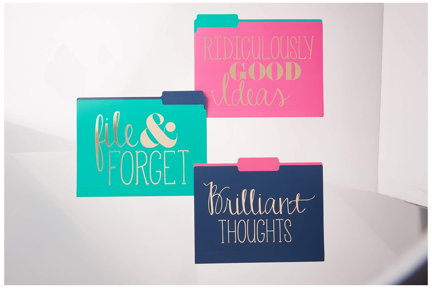 Roobee Gold Brilliant Thoughts, Ridiculously Good Ideas, File & Forget Decorative File Folders (Set of 9)