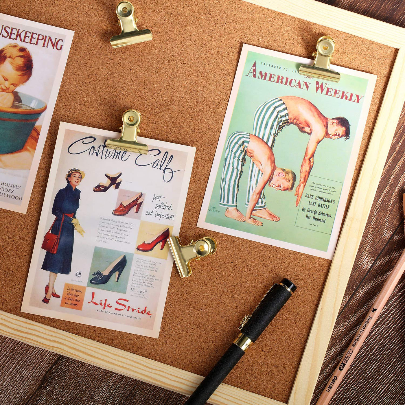 30 Pieces Push Pins Clips, Bulldog Clips with Thumb Tacks for School Artworks Projects on Cork Board, Photos Documents on Bulletin Board, No Holes for The Paper on Cubicle Walls (Gold)