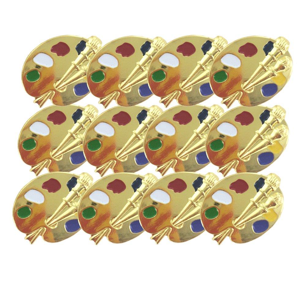 Painting Palette pin. Pin size Is 7/8 Inch, Enameled palette and brushes. Comes with package of 12 lapel pins and poly bagged.