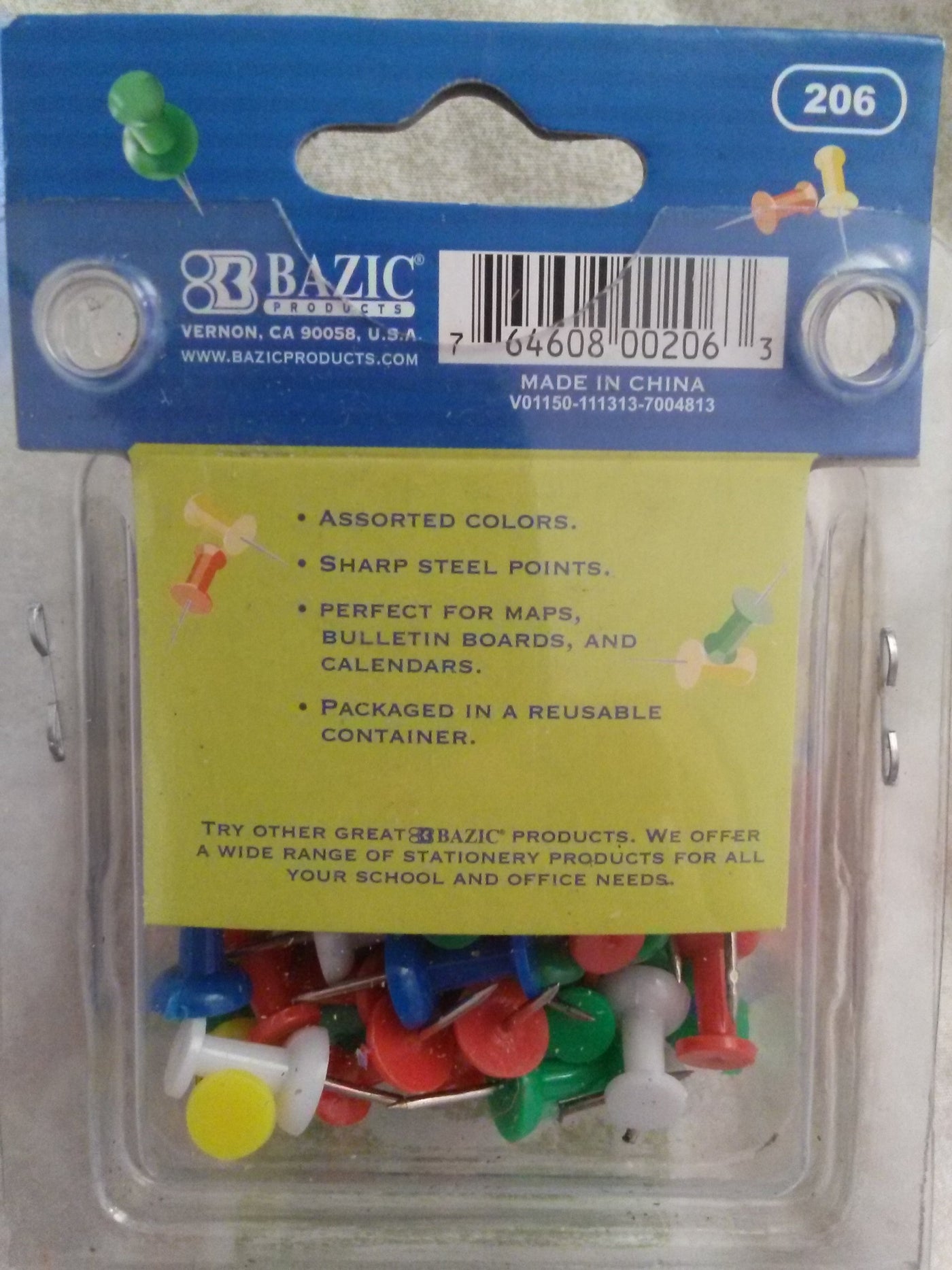 BAZIC Assorted Color Push Pins 100 Per Pack