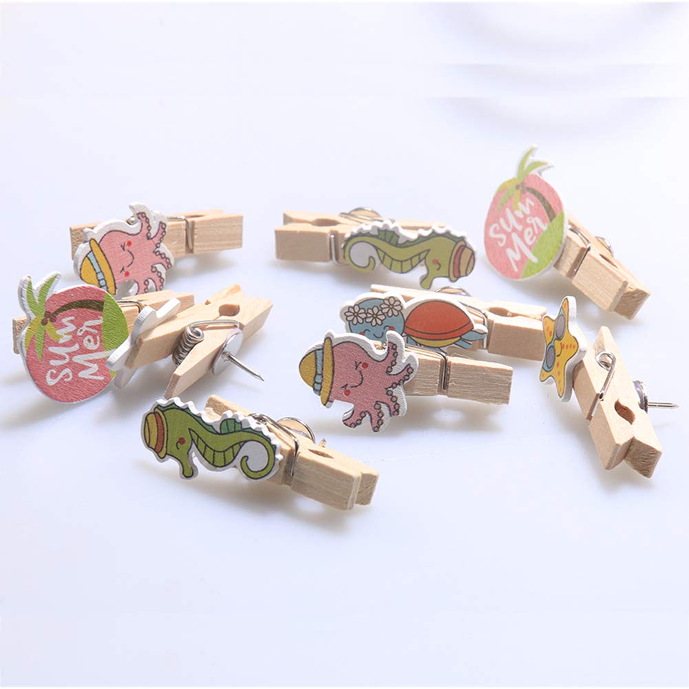 haowei 20 Pcs Marine Animals Wooden Clip Thumbtack Seahorse Turtle Decoration Pushpin Paper Picture Photo Memo Menu File Memo Nail Accessory Cork Board Bulletin Board Drawing Pins