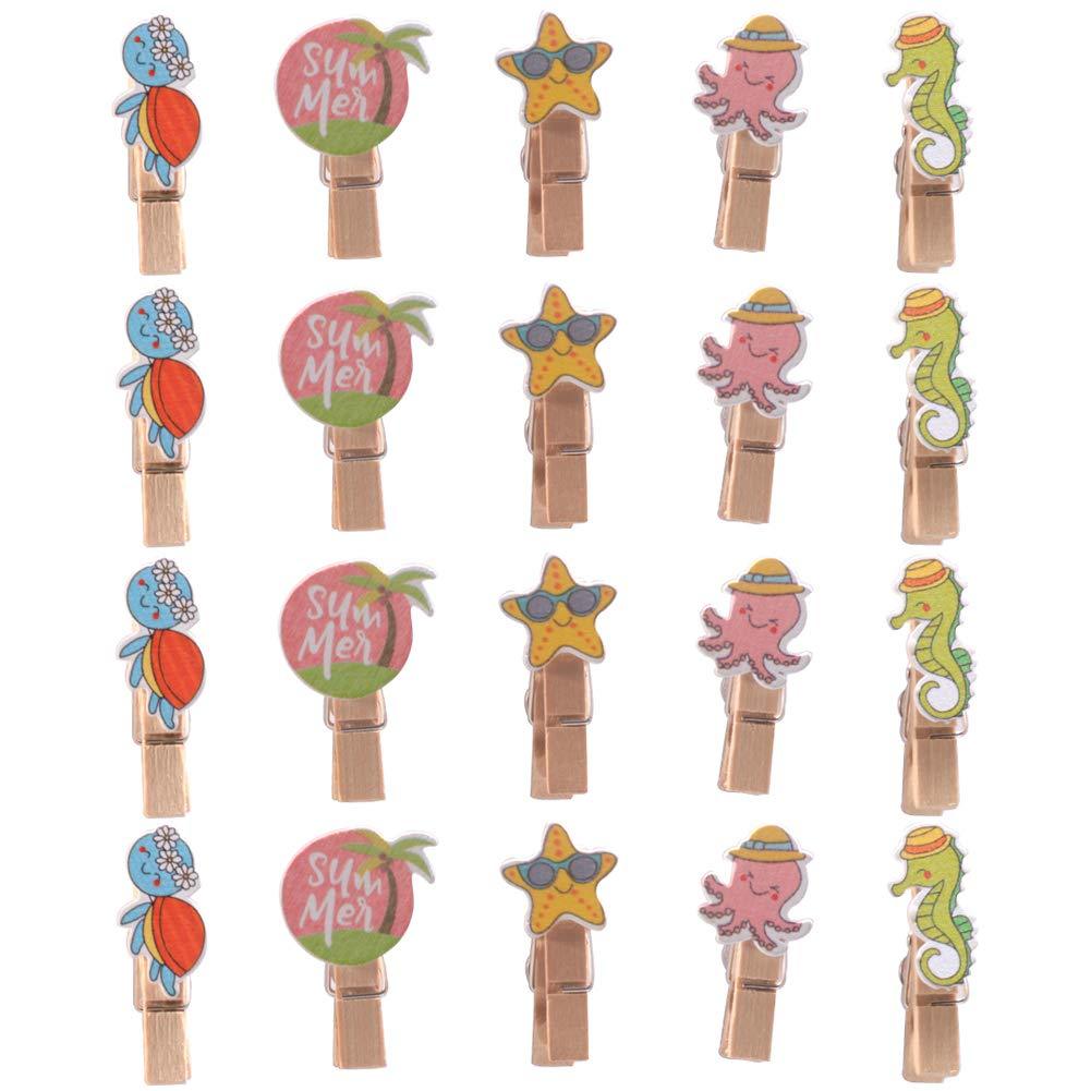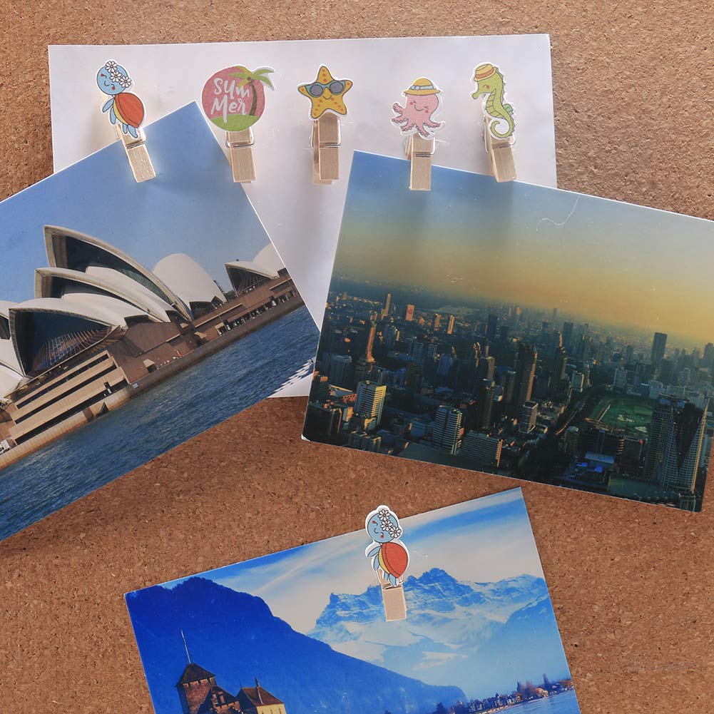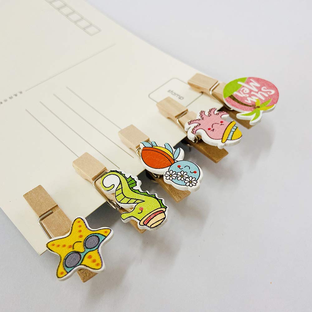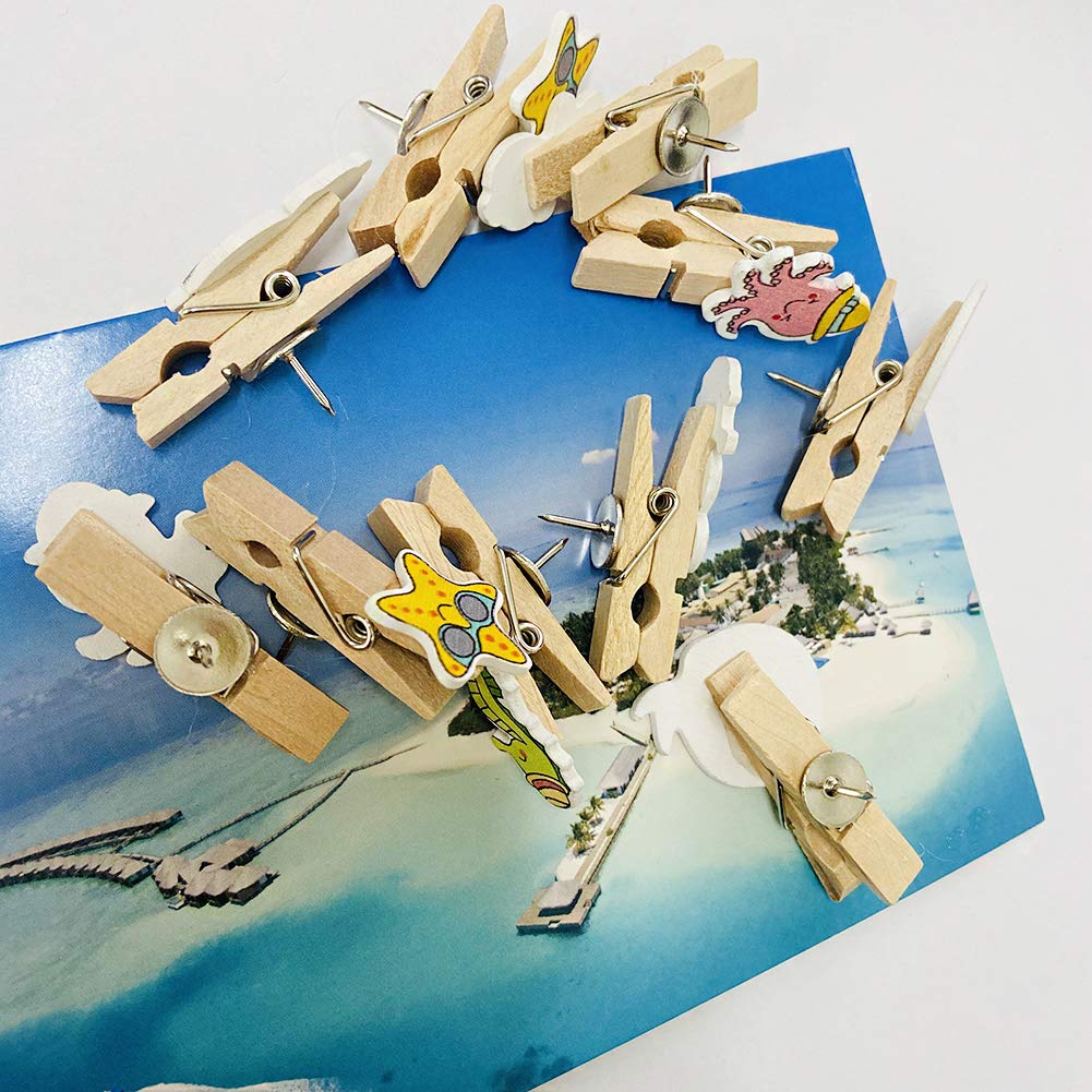 - Unique DesignDifferent shapes of marine-themed animal decorations and wooden clip pins are both practical and beautiful. They are indeed good helpers in your life. This picture clip has a sturdy structure that will allow you to use it for many years. More importantly, brightly colored paintings are environmentally friendly and will not fade easily. It is an ideal choice for crafts, business cards, home decoration and office decoration.