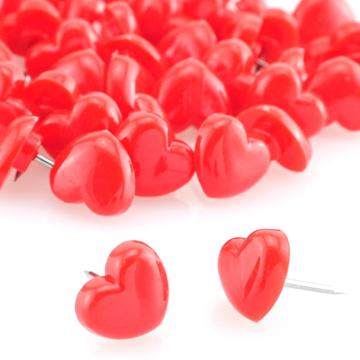 Heyous 100pcs Heart Shaped Push Pins Pink and Red Plastic Thumbtacks for Cork Board DIY Decoration