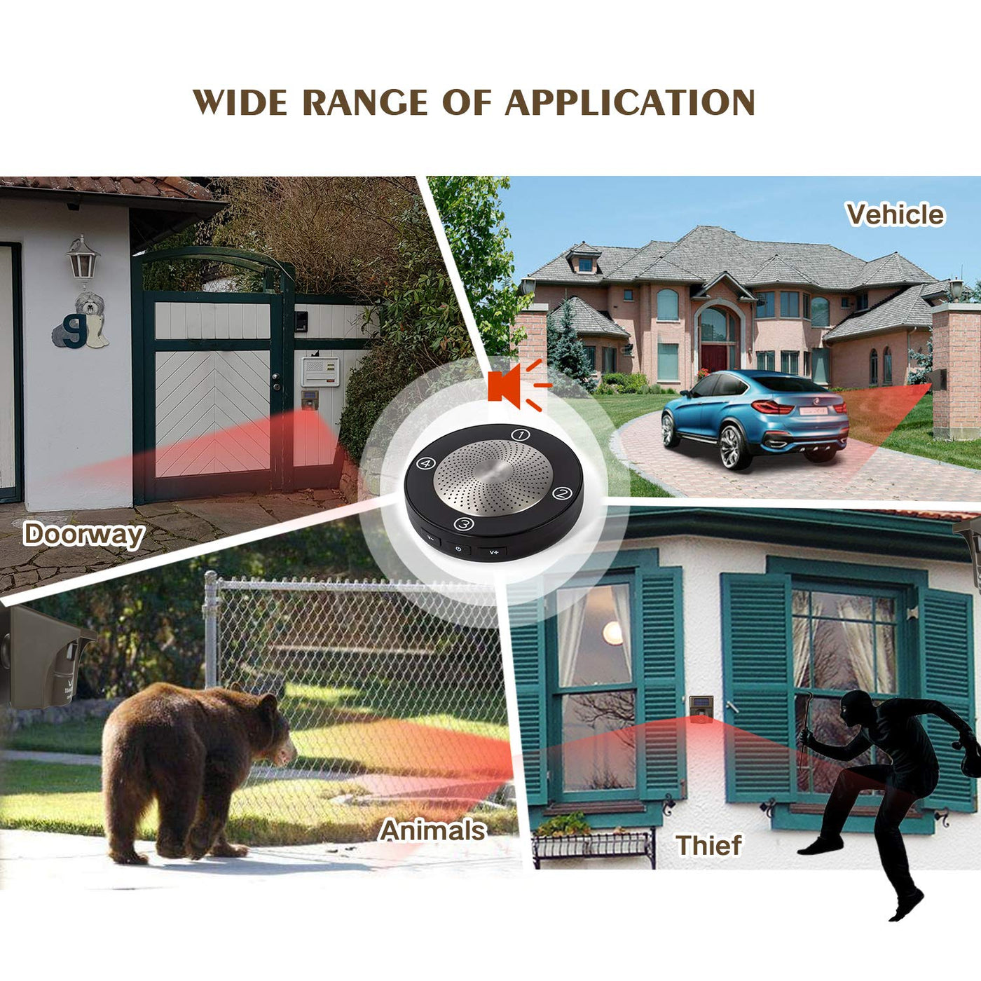 - EASY TO INSTALL- Quick Start Guide has you operational in minutes. Can expandable up to 4 sensors and unlimited receivers for complete coverage of your perimeter. Wireless driveway alarm Detects movement from humans, cars, and large animals. There are 4 fun & unique chimes to choose from. Match different chimes with different sensors around your property to differentiate where driveway alarm wireless motion is being detected.