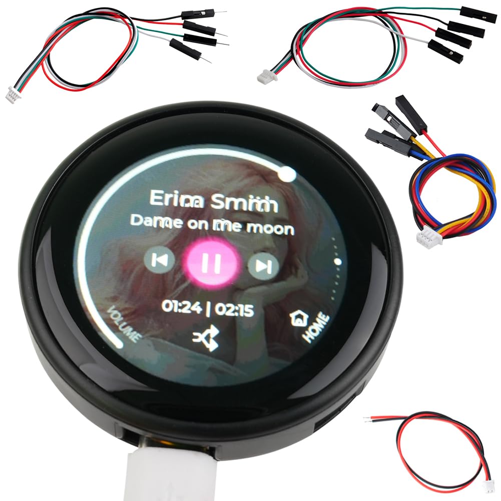 - Comes with 1pcs 1.28 inch round display esp32 screen with black case, 1pcs 1.25mm 2pin cable, 1pcs 1.0mm 4pin to female dupont wire, and 1pcs 1.0mm 4pin to male dupont wire.