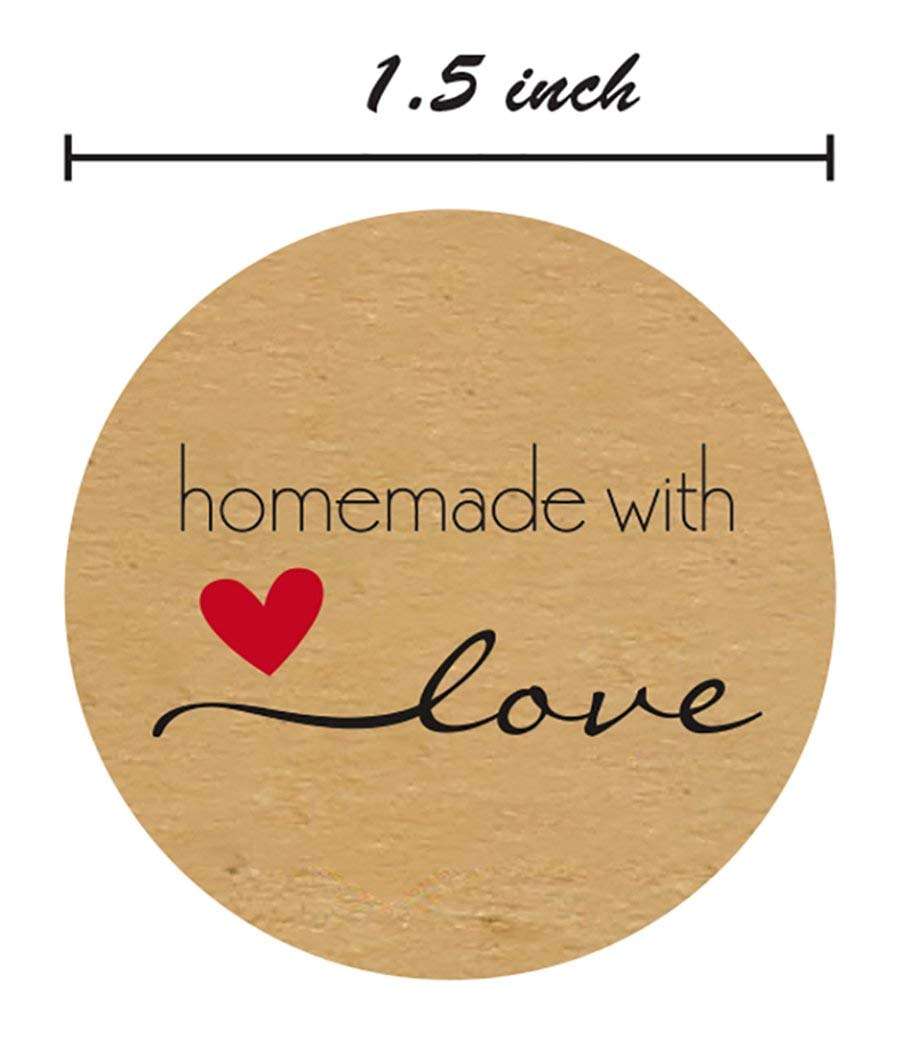 - Sticker reads 'homemade with love' in black ink and features an eye catching red heart. Perfect final touch for baked goods, jams, jellies, canning, bake sales, and more!