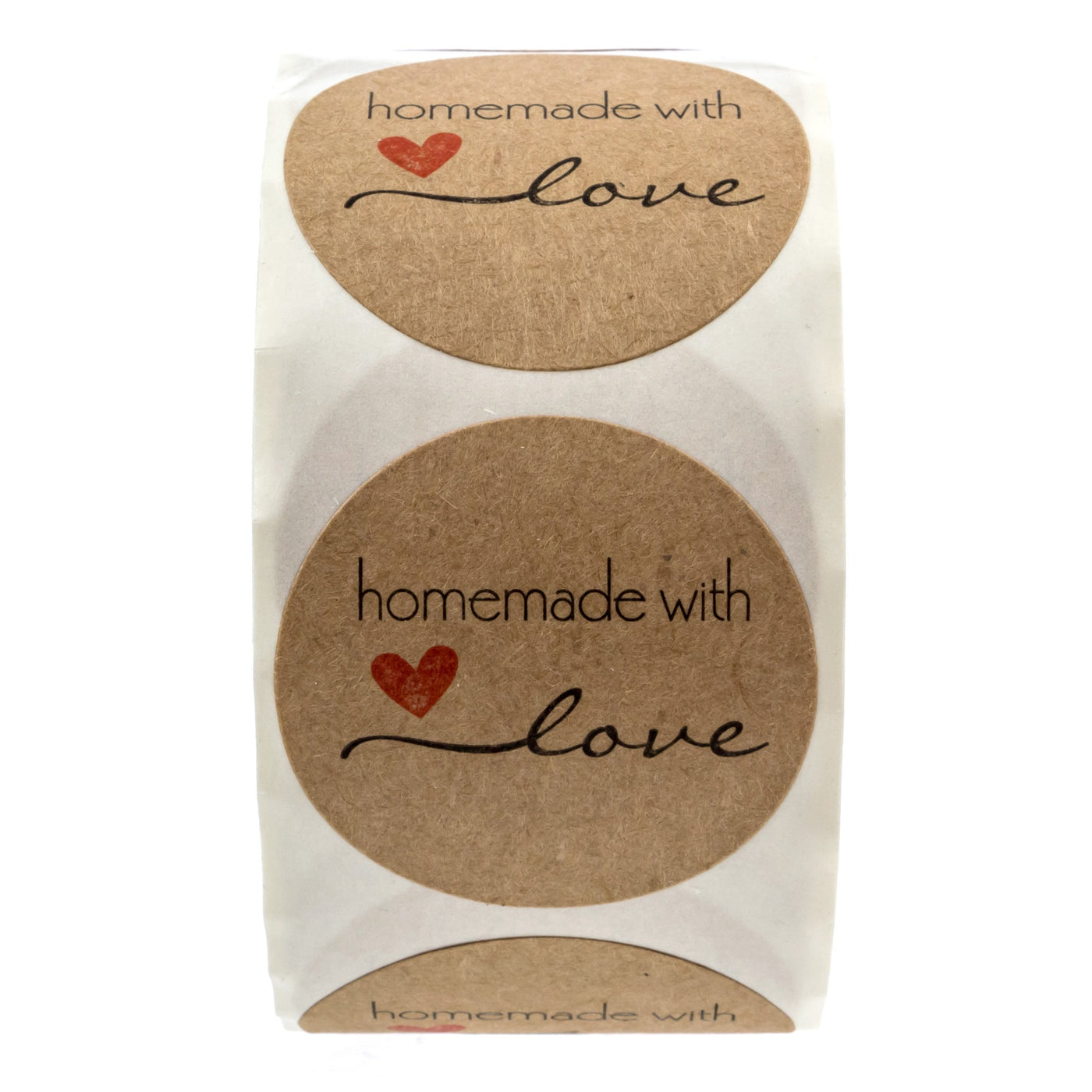 - Includes: 500 Homemade with Love brown kraft stickers per roll.
