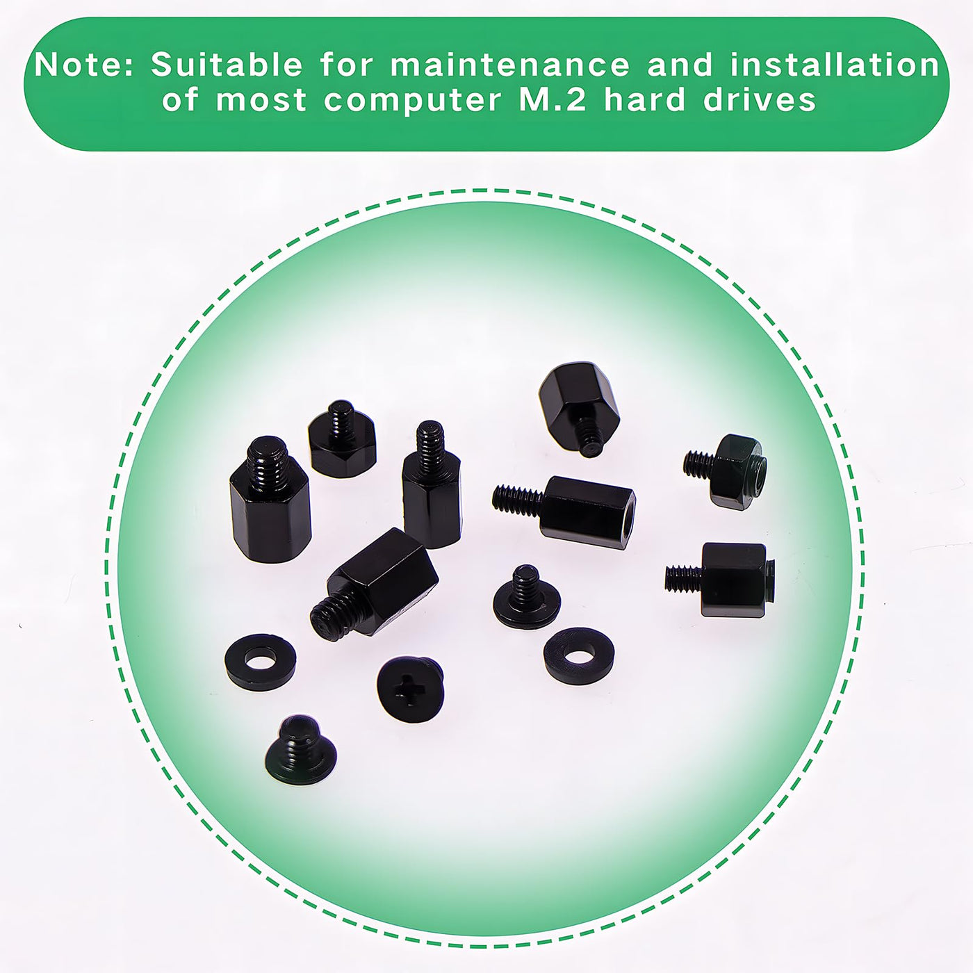 - Package included:200pcs black m.2 standoff and screw and washers.4 style standoffs for mounting M.2 SSDs,they are M3x6+2.5,M2x2.5+2.5,M2x4.5+2.5,M2x6+4,2 size M.2 screws,M3x3 screws and M2x3 screws, 40pcs M2 washers and 1 magnetic screwdriver,Available in different lengths and diameters to accommodate various SSD sizes and mounting configurations