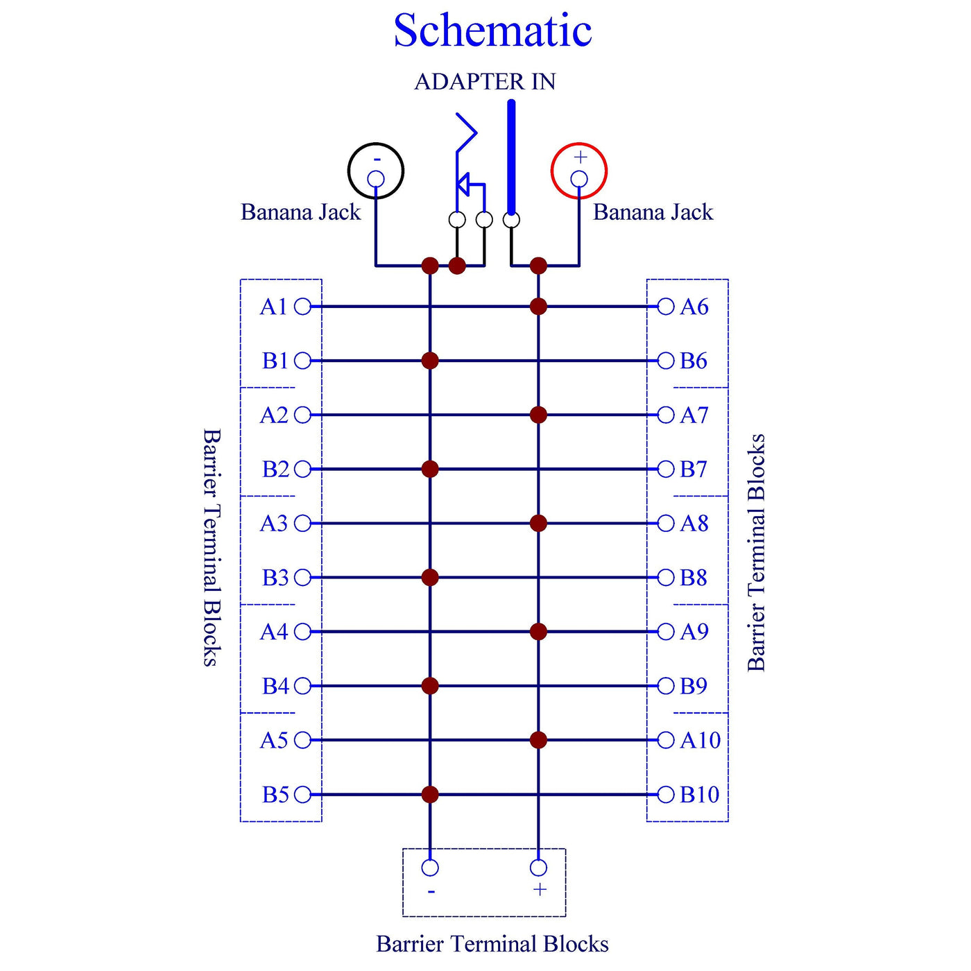 - 20 Amp 48V 2x10 Position Barrier Terminal Block Distribution Module for AC DC. You can chose input from Barrier terminal block, Banana jack or DC power jack. Support for multiple module extension connections.
