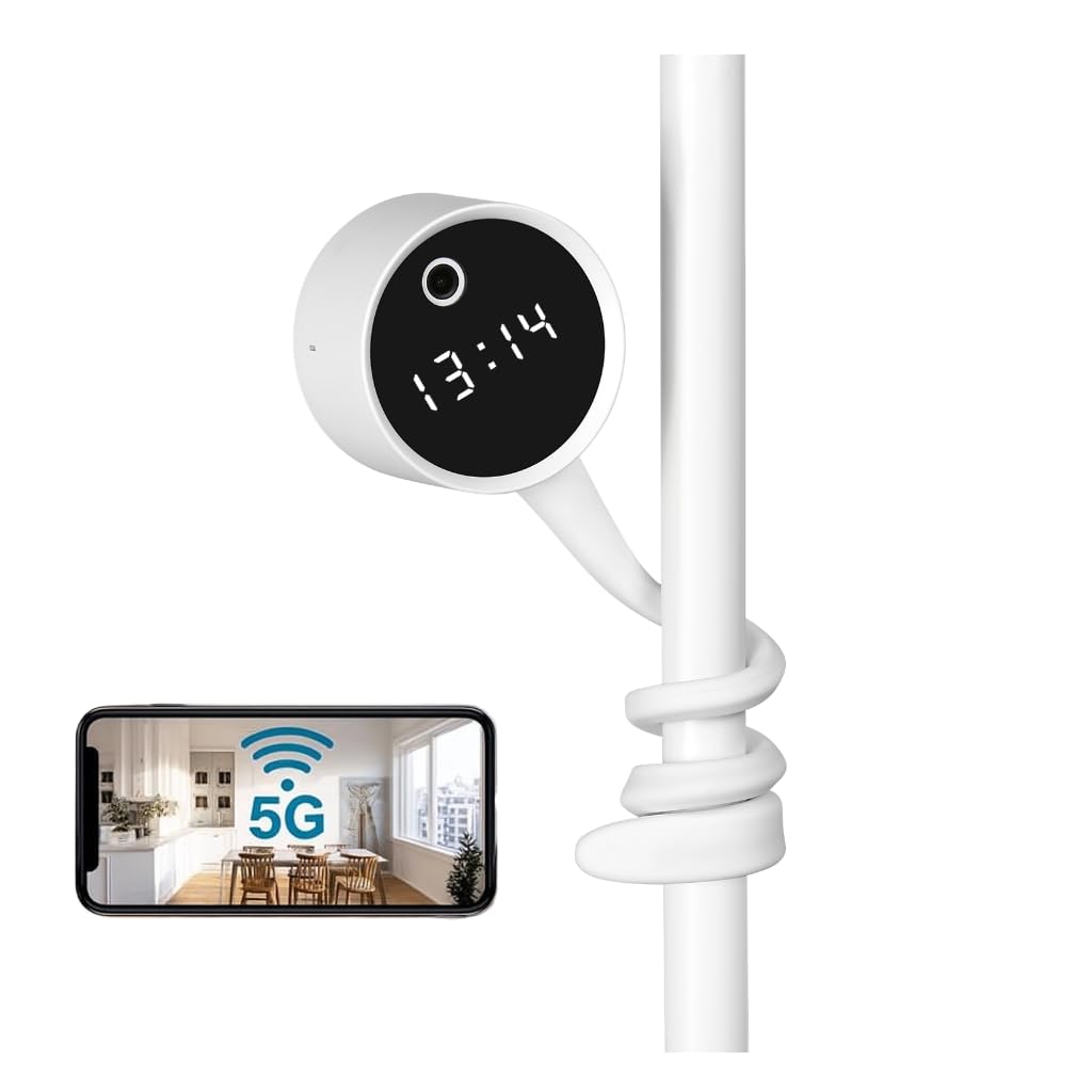 2K 3MP Indoor Security Camera,Flexible Silicone Tail Grips Any Surface, Baby/Elder/Dog/Pet Cam, View on App, Wifi2.4G&5G, 24/7 HD Clock Camera