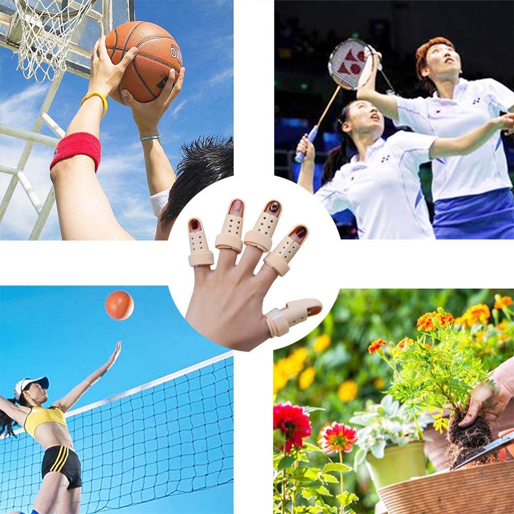 ------PACKAGE------ 5 Pieces Trigger Finger Protector, 5 Pieces in 5 different size, the biggest can fit men's finger.suit to men and women ------ FINGER SPLINTS------ 1. Finger Splint is made of composite material, Thermo Plastic Gel (TPE),extremely breathable, strong toughness.It has excellent properties such as strong absorption capacity, compression resistance, good load bearing capacity, and durability 2.Finger Splints help straighten and support finger. protect injured finger knuckles and finger jointsfixed finger ,protect finger joints and other finger problems from irritation, knocking and bumping 3.Small and light, it's convenient and comfortable to carry in any occasion,for example daily life ,working,and so on. 4.The finger splint has Non-slip design, it allows you to use it in daily life, such as eating, walking, sports, etc. ------INSTRUCTIONS------ 1. Trigger Finger Splint can be adjust, use soft tape to adjust the size that suits you.soft EVA pads and the holes make your finger breathable and get your finger stay put. 2. Easy to use and carry --Small and light, can be carried in any occasion,for example doing housework, using computers, and playing basketball etc. ------ATTENTION------ 1.Pay attention to don't use for a long time. 2.People who has skin sensitive, do not use for a long time 3.After using,put back to the bag , Keep it in a dry place avoid direct sunlight.