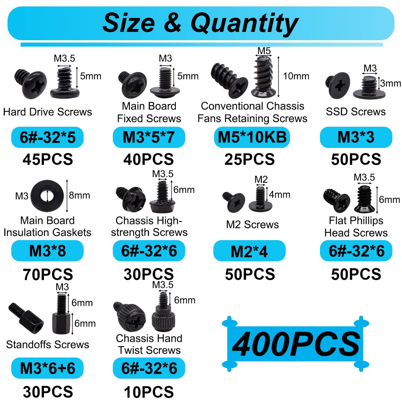 - Product application: This computer screws kit is suitable for PC Fan, PC Case, HDD Hard Drive, PC Case, SSD, DIY PC installation & repair etc.