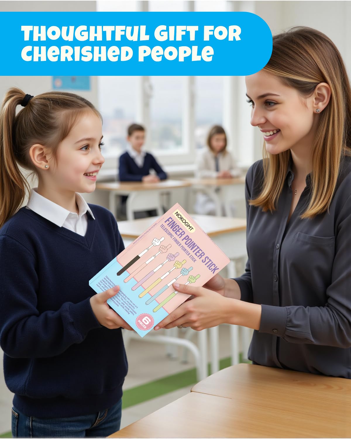 - Gift-Ready & Fun to Use Packaged in a neatly designed box, this 6PCS mini pointer finger set is a thoughtful gift for teachers, coworkers, students, or presenters. A functional yet playful tool that adds color and charm to any learning or working space.