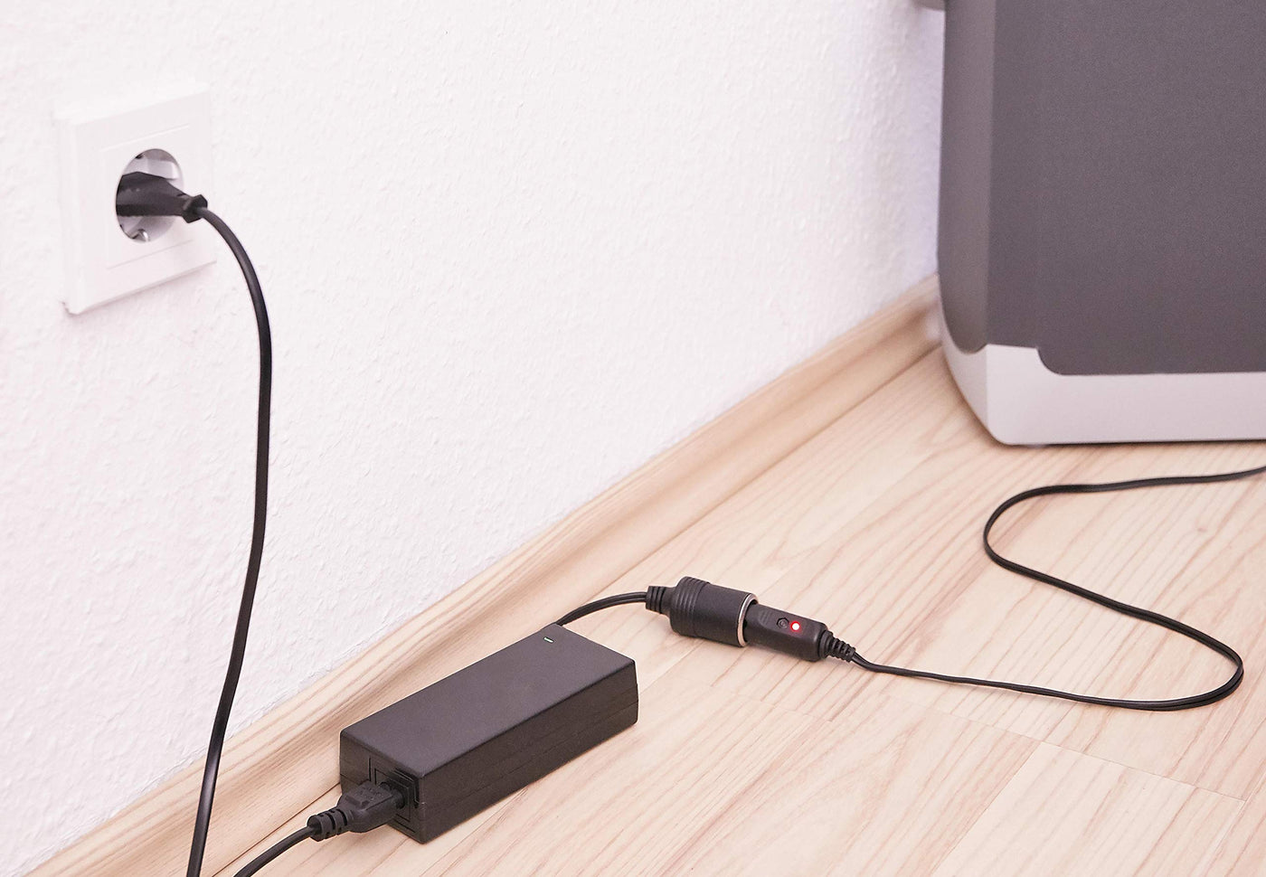 - The voltage converter / mains rectifier is compatible with all devices with a cigarette lighter plug such as thermoelectric coolers, self-sat flat antennas, compressed air compressors, car vacuum cleaners, heated seat blankets, fans, lamps, DVD players, navigation devices and many other devices with car plugs that require up to 12V/6A input current. Please note that the power adapter is only suitable for 12V devices up to max. 6A/72W