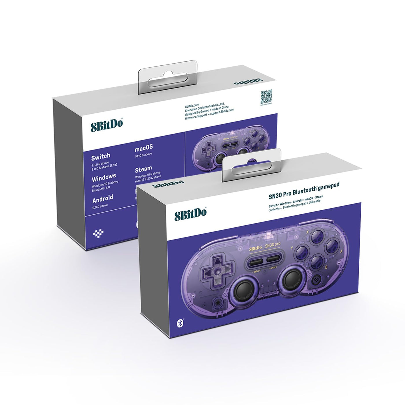 AKNES 8Bitdo SN30 Pro Bluetooth Controller, Hall Effect Joystick Update, Gaming Controller Compatible with Apple, Switch, Windows, Steam Deck, Android and Raspberry Pi - Crystal Purple