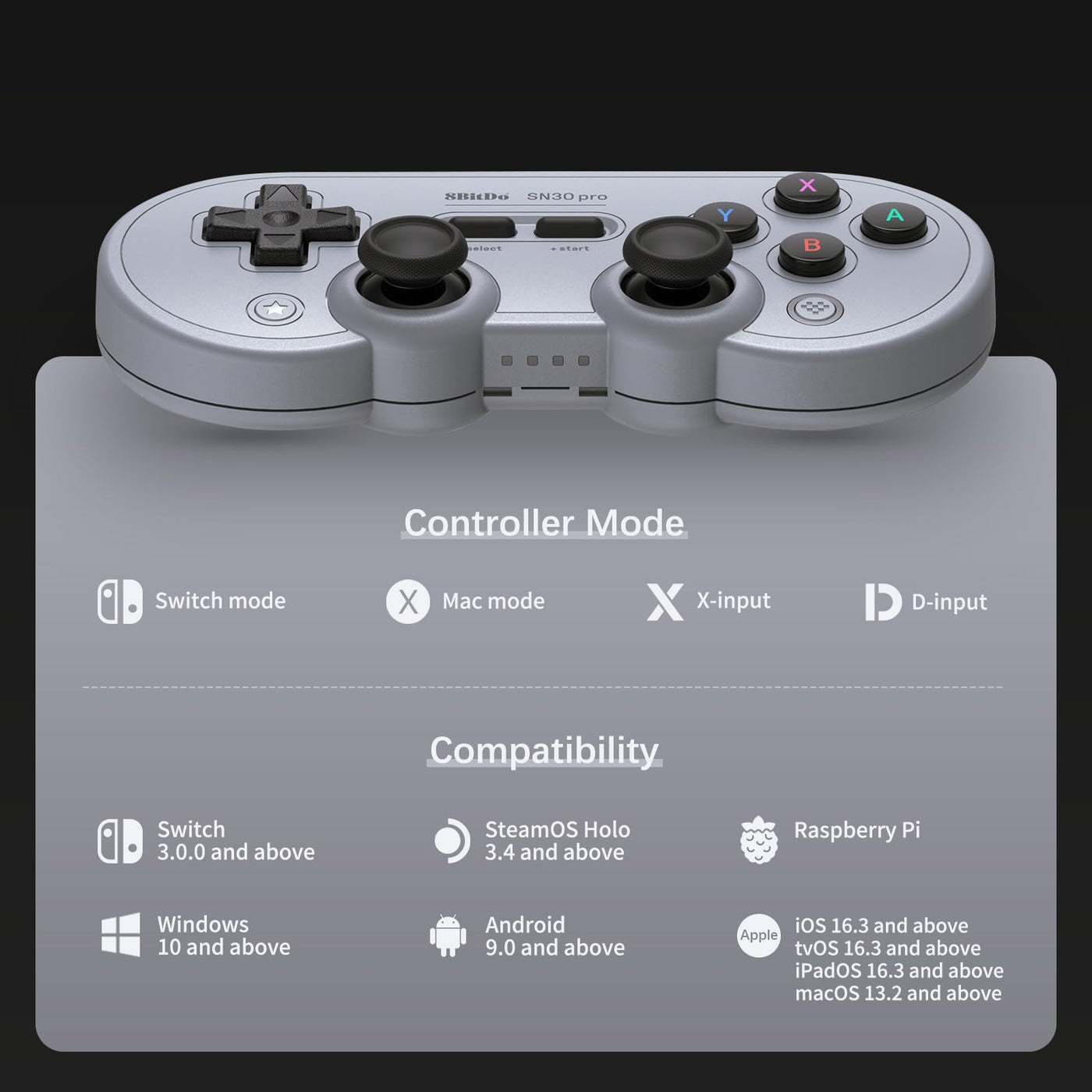 - Compatible with Apple(iOS, iPadOS, tvOS, macOS), Switch, Windows, Steam Deck, Android and Raspberry Pi. Supports Turbo, Rumble vibration, Motion control (for Switch only).