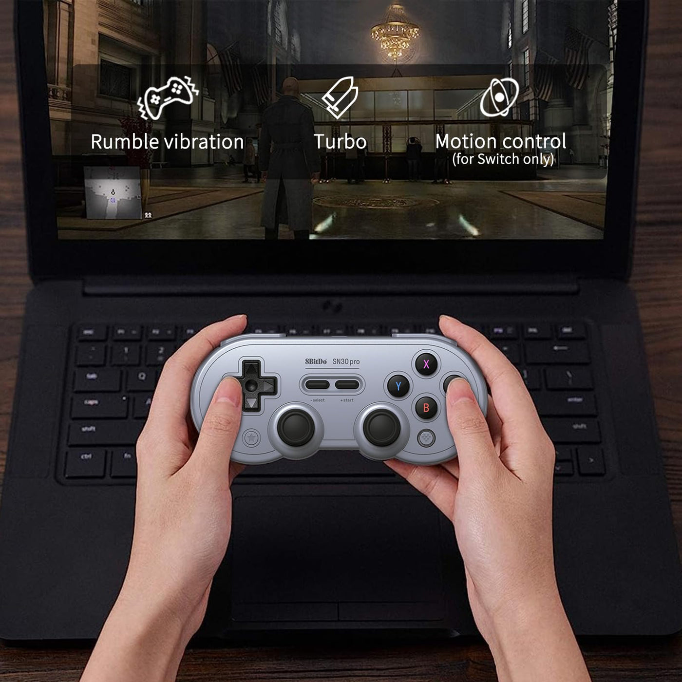 AKNES 8Bitdo SN30 Pro Bluetooth Controller, Hall Effect Joystick Update, Gaming Controller Compatible with Apple, Switch, Windows, Steam Deck, Android and Raspberry Pi - Gray Edition Grey Edition