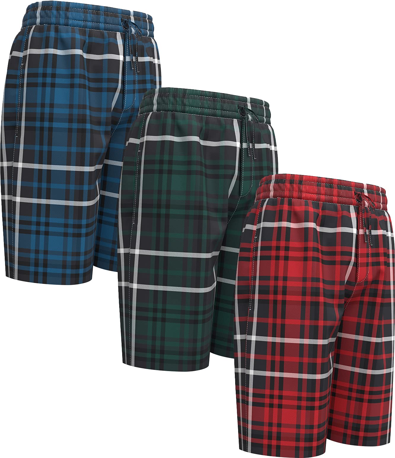 Andrew Scott Men's Soft Poplin Woven Pajama & Sleep Jam Cargo Short Lounge Pants | Multi Packs 3X-Large 3 Pack - Plaids-winter Red / Blue / Forrest