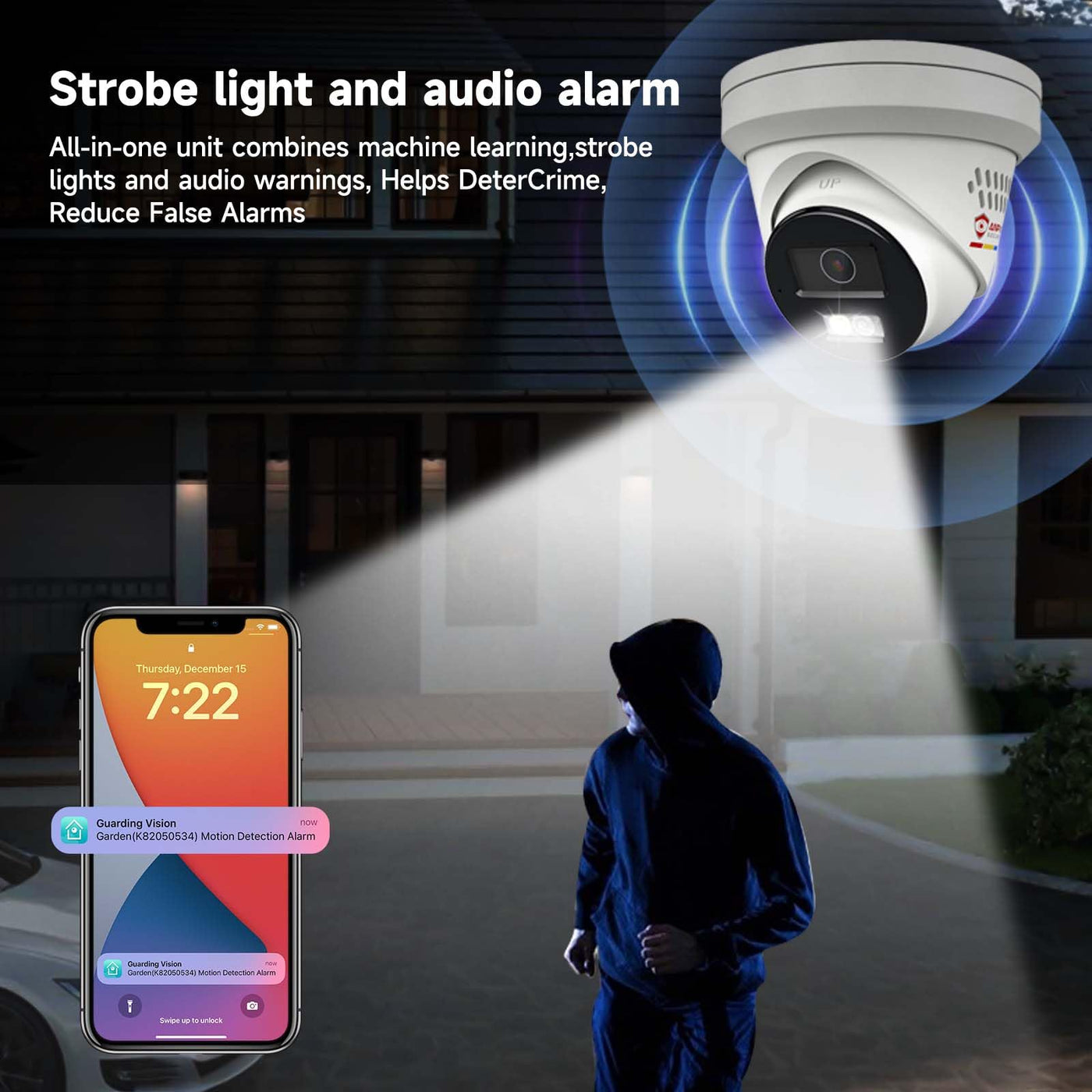 - Active Deterrent & Two Way Audio: Update with advanced active deterrent feature (after you enable this function on Anpviz H Series NVR or web browser), when the poe ip camera detects human or vehicles, the speaker and light alarm will be triggered, flashing white light and warning sounds from the speaker help deter unwanted individuals. The built-in mic and speaker allow for two-way audio communication. Notice: 2-way audio and Active Deterrent function only work with Anpviz H Series NVRs.