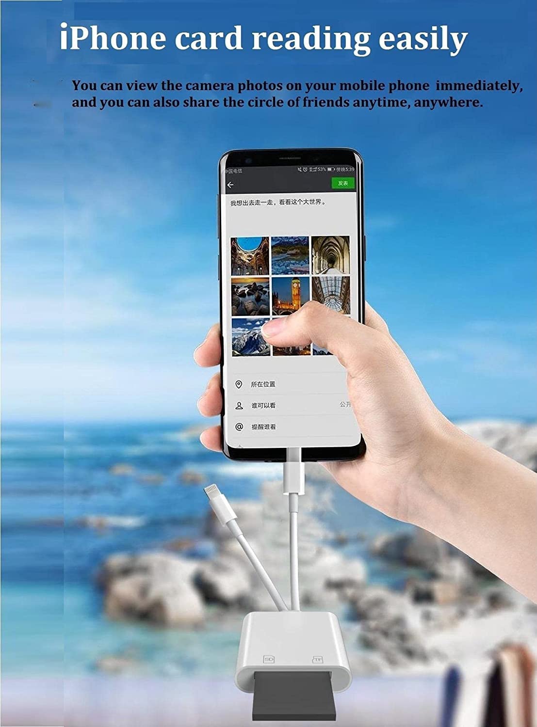 1.[Apple MFi Certified] Lightning and USB-C SD/TF Card Camera Adapter Lightning and USB adapter is an accessory specially designed to solve the problem that the process to import the photos to IS devices is so complex. Through the SD/TF card slots, we can import the photos from the camera memory card to your devices directly.2. Parameter Working voltage: 3.3V-4.0V Lightning Interface: 12M/S-16M/S Type-c Interface: 10M/S-16M/S TF/ SD slots: Supports memory cards below 1TBThe relevant data above is measured by the department. The actual operating current and transmission speed may vary due to the different type of devices and accessories.3.Compatibility1) Only support IOS12.0 above, please check the device system information before you use it and upgrading the system if it below IOS12.0.2) Android phone need to support OTG function and make sure the format of SD/TF is FAT32 before you useit.4. PICK US1) Super durable: Easy to carry,lightweight, foldable, very suitable for home travel. 2) Wide compatibility: iPhone, USB-C devices such as for Pad Pro 2020/2019/2018, iMac/iMac Pro 2017, MacBook/Pro/Air 2020/ 2019/2018, Samsung Galaxy, Chromebook /Pixelbook, Surface Book 2, Asus Zenbook, Dell XPS13/15 etc. camera, etc.3) High-quality structural design:The compact interface design of the adapter. No longer worry about loose interfaces.4)Safe, Stable and Fast Transmission.5.We promise★The quality of the product is very reliable, and each product has undergone strict functional testing and reliability testing.★45-days money-back guarantee and 2-years Warranty for every our customer to make sure you would be happy about your purchasing from us.