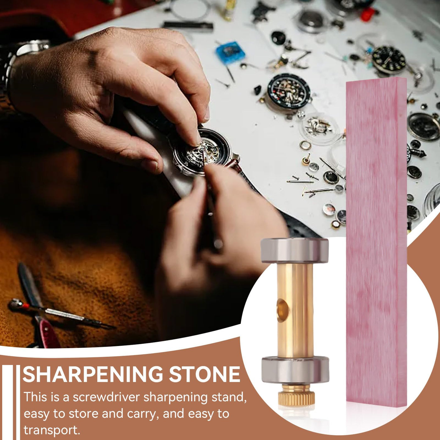 - Excellent Copper: Screwdriver sharpening tool is made of copper material, sturdy and durable, this Sharpener Stone with Wristwatch Sharpener will not scratch your watches.