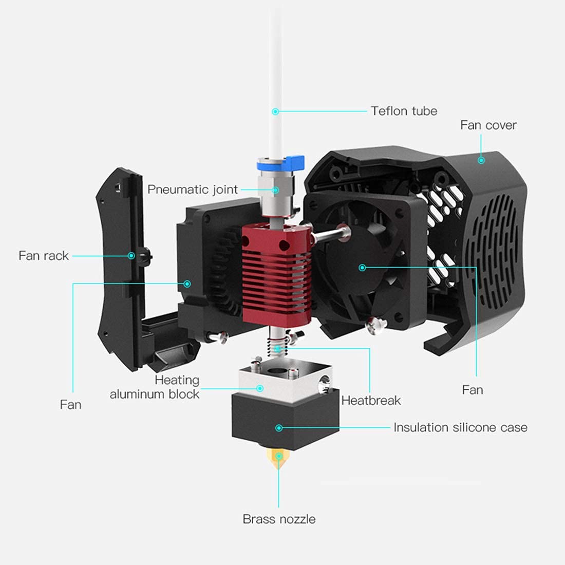 - Effective Heating and Cooling System:there are heater block and heat sink, heater block with insulation silicone case keeps the temperature stable and makes the printing even; dual-fan design makes dissipation evener, solidify model quickly and print presisely