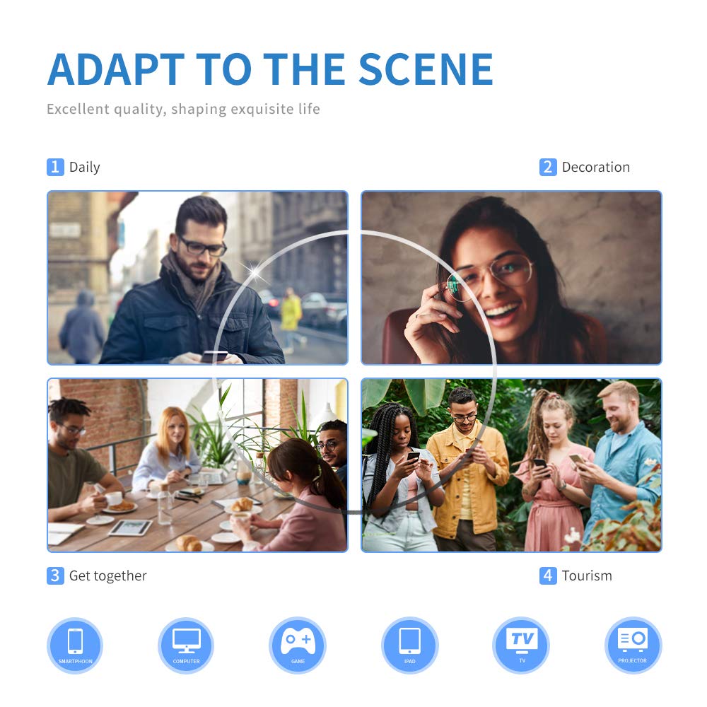 - PACKING INCLUDES: 1. One pair of anti-blue ray computer glasses, which can minimize the eyestrain caused by harmful blue ray emitted from digital screens. 2. Complimentary frame packing cloth bag and cleaning cloth.