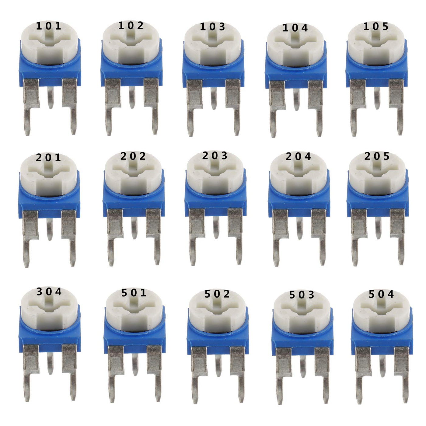 BOJACK 15 Values 300pcs 100 Ohm - 2M Ohm Variable Resistor 6mm Potentiometer Classification Suit Package in a Clear Plastic Box