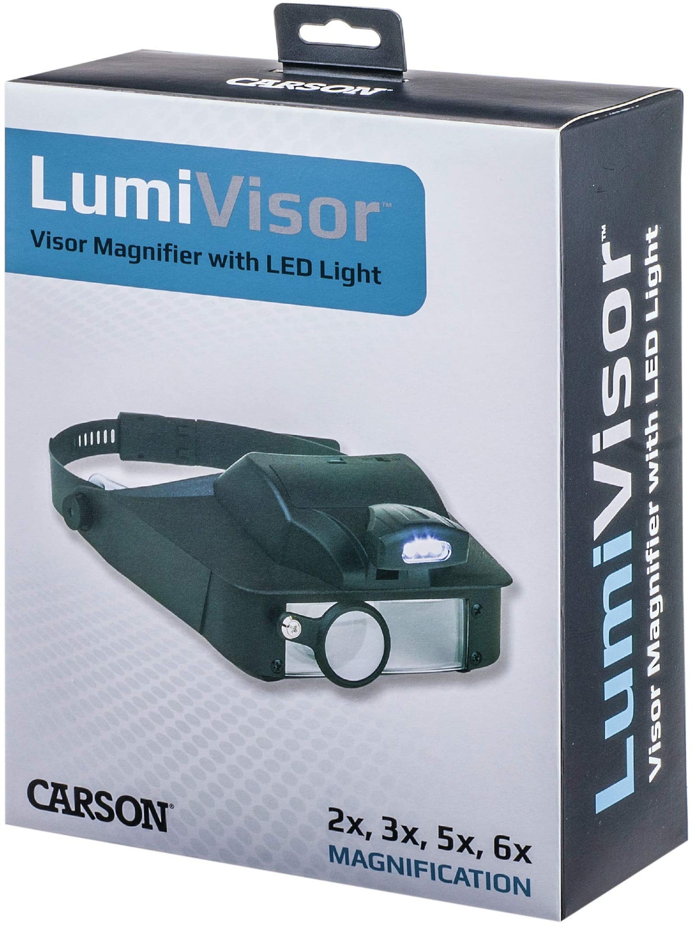 The LumiVisor (LV-10) from Carson is a fully adjustable, head worn magnifier with multiple, built-in acrylic lenses. By combining the multiple lenses together, users can achieve either 2x, 3x, 5x or 6x power magnifications. The head strap is fully adjustable and can be adjusted to the shape of your head using the quick-release buckle to lock the strap in place. The LumiVisor is LED Lighted with 3 super bright LED bulbs (3 AAA batteries not included). The LED light can be adjusted to position the light to where it is needed most. The LumiVisor can also be adjusted up or down as needed. The LumiVisor can be used for a variety of purposes ranging from hobbies, crafts, model building, soldering, jewelry making, reading, inspection of coins and stamps and other tasks. It is a great addition to add to your garage or work space. The LumiVisor is backed by Carson. At Carson, we strive to make sure our customers are 100 percent satisfied with the quality of our magnifiers. Carson will repair or replace your magnifier if it is found to have manufacturing defects in materials or workmanship..