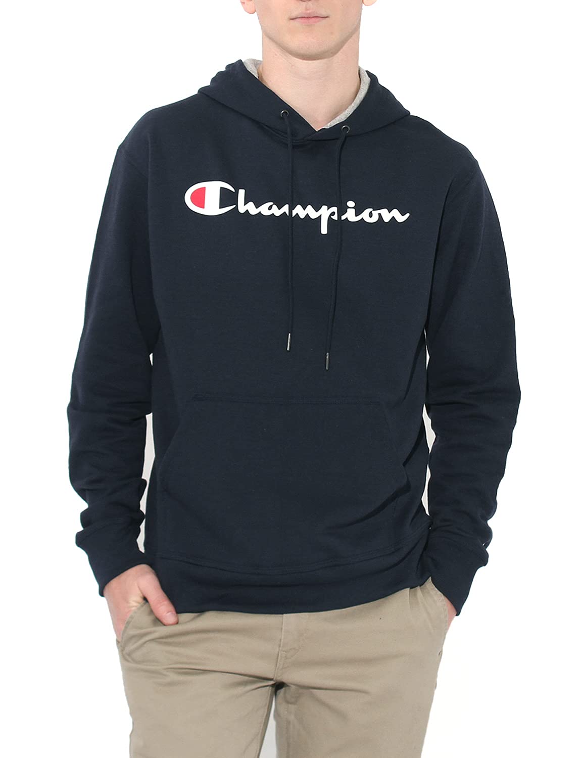 Champion Men's Powerblend Fleece Pullover Hoodie, Script Logo