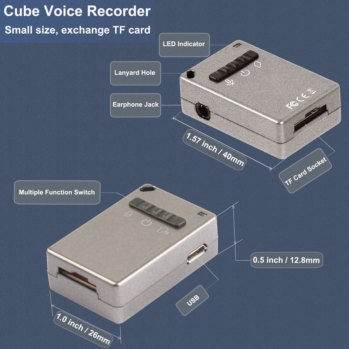 - Micro SD Card: The voice recorder card requires a micro SD card to store the recorded file, with 16gb micro SD card, all recorded audio files are saved on the micro SD card, can be connected to the computer via USB cable or micro SD card reader, you can drag the files over to your computer, max support 128GB (Not Included!);