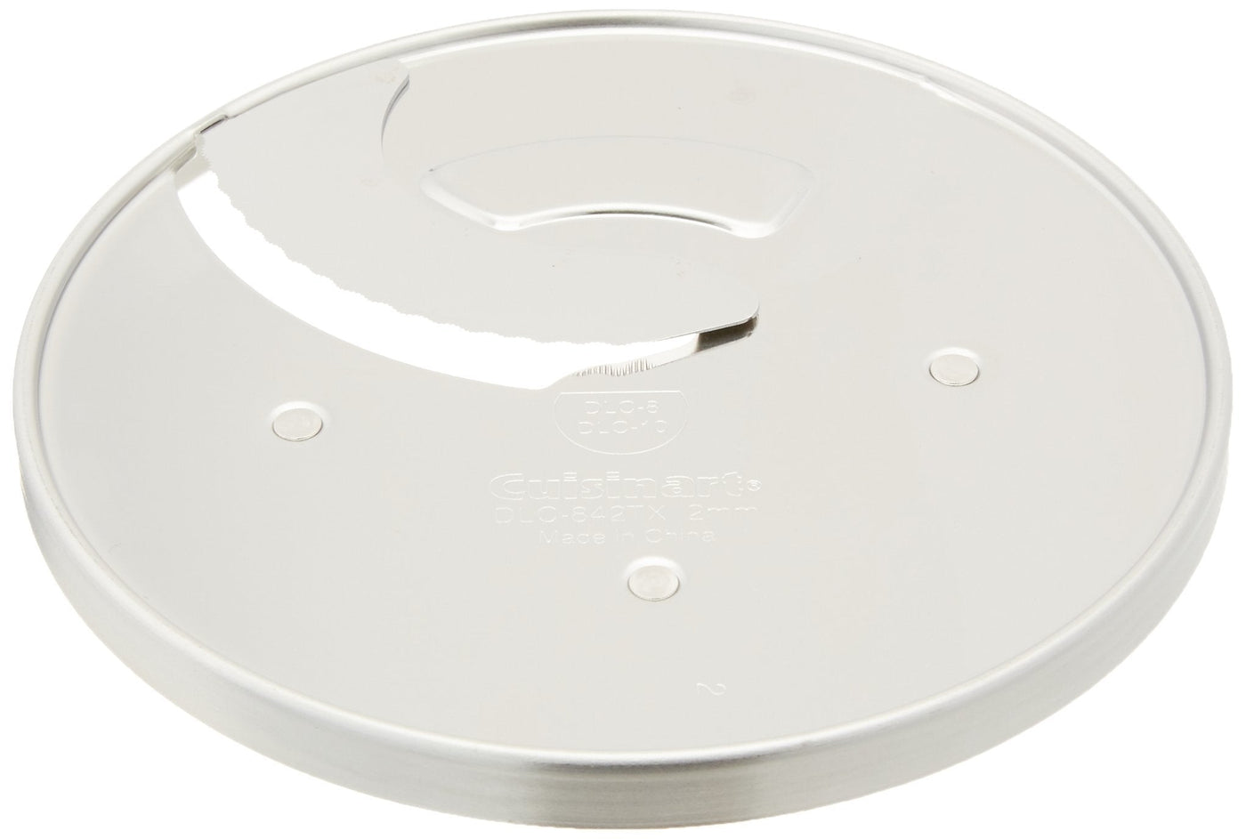 Made of durable stainless steel, this 2mm thin slicing disc is designed to fit Cuisinart 11-cup food processor models DLC-8S and DLC-2011. The disc's sharp blade slices a variety of fruits and vegetables effortlessly, and it's dishwasher-safe for quick, convenient cleanup. The slicing disc measures 6-1/2 by 6-1/2 by 2/3 inch and carries a limited lifetime warranty.