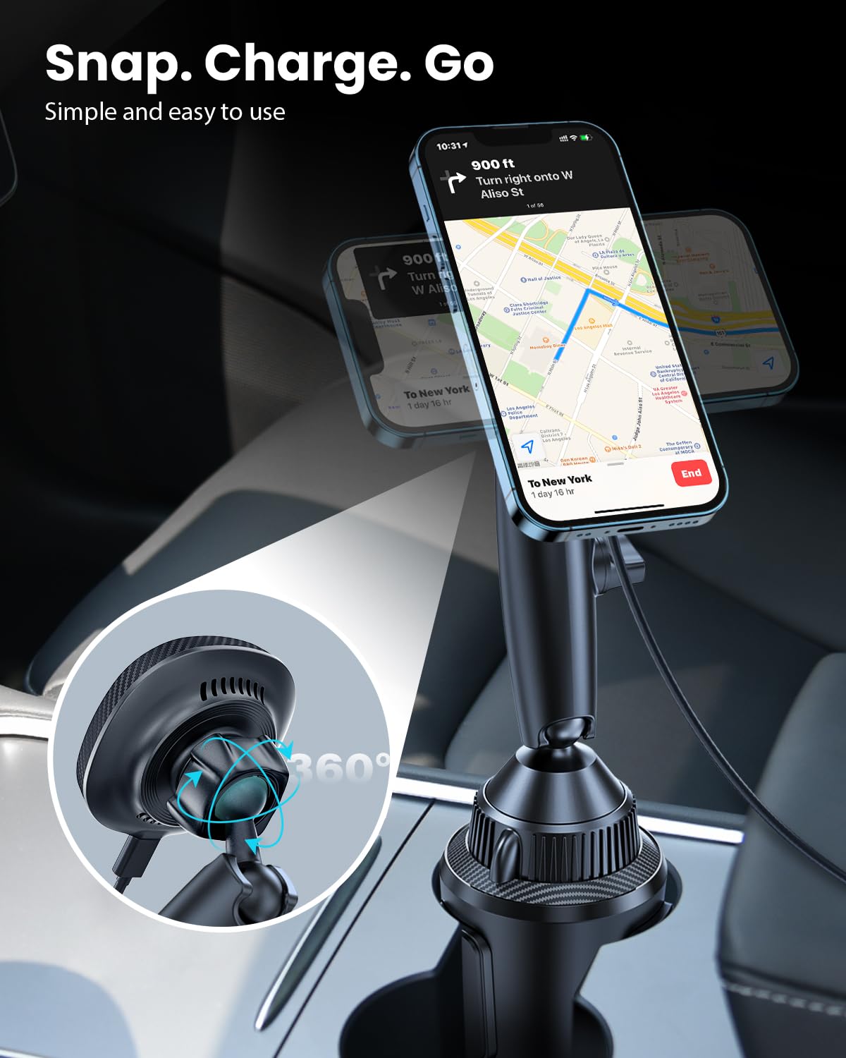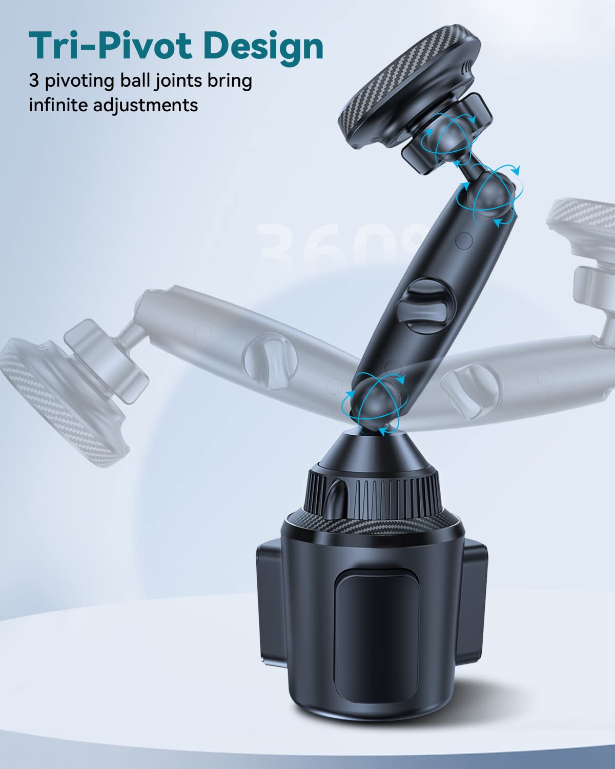 - Tri-Pivot Cup Phone Holder: EXELIQ cup holder cell phone mount super flexible three-ball joint design is different from other common ball joints. This car mount charger for magsafe attaches the cradle to the arm while significantly maintaining the flexibility of the upper and lower ball joints, this innovative combination maximizes your viewing experience.