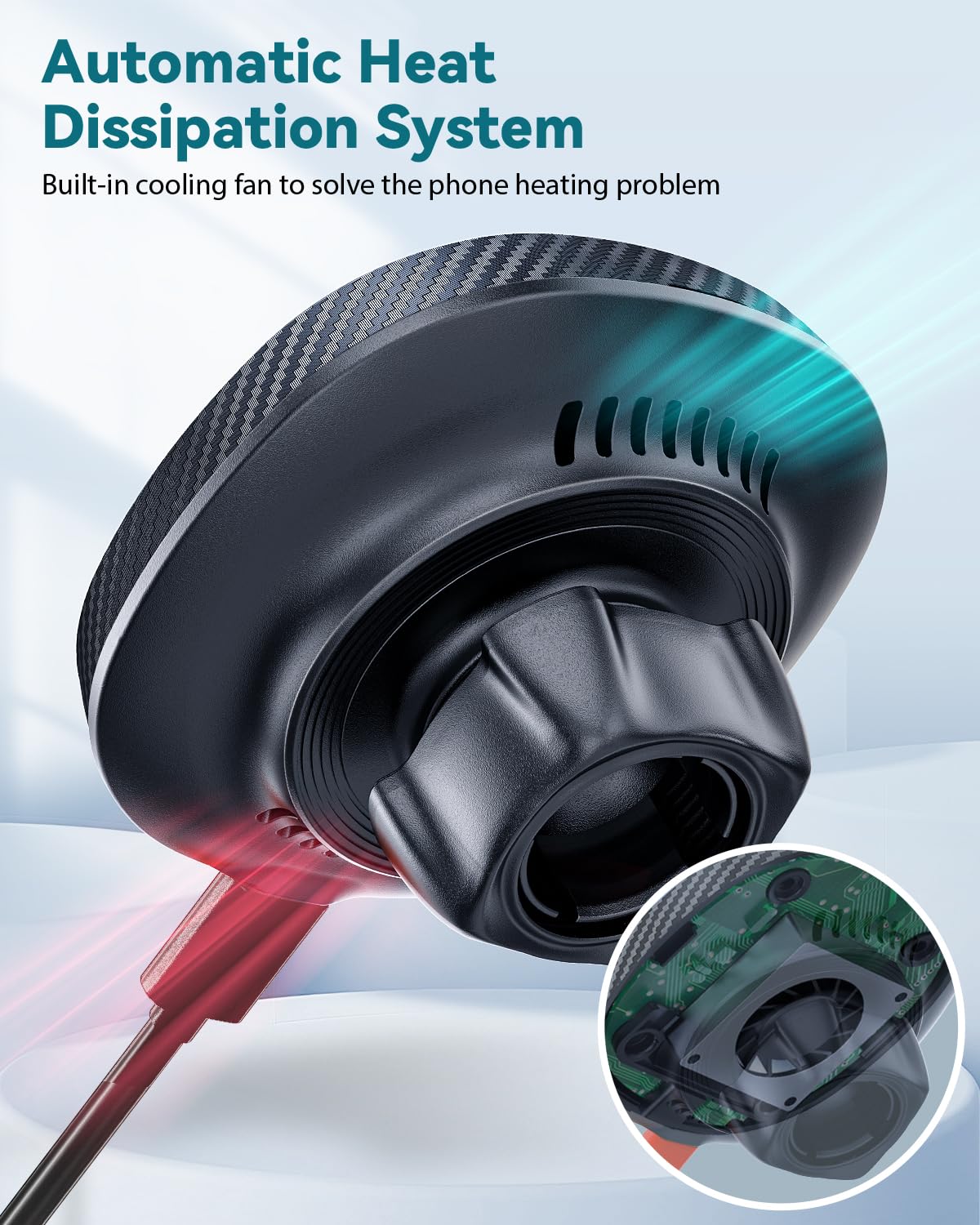 - Automatic Heat Dissipation System: Worry about your iPhone getting overheated when charging? The car cup holder phone charger has a built-in fan that provides temperature control while you are charging. The heat dissipation system of car phone holder charger will automatically dissipate heat emitted by the holes to improve charging efficiency, say goodbye with charging heat!