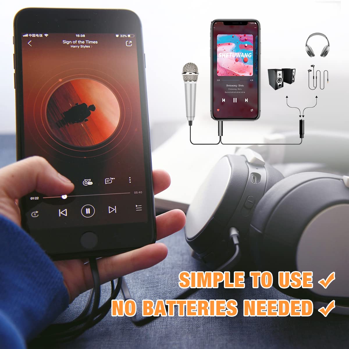 DELADOLA Mini Microphone,Portable Vocal Tiny Microphone, Asmr Microphone,Phone Microphone, Mini Karaoke Microphone for Voice Recording Chatting and Singing On iPhone,Android,Laptop Notebook(Silver)