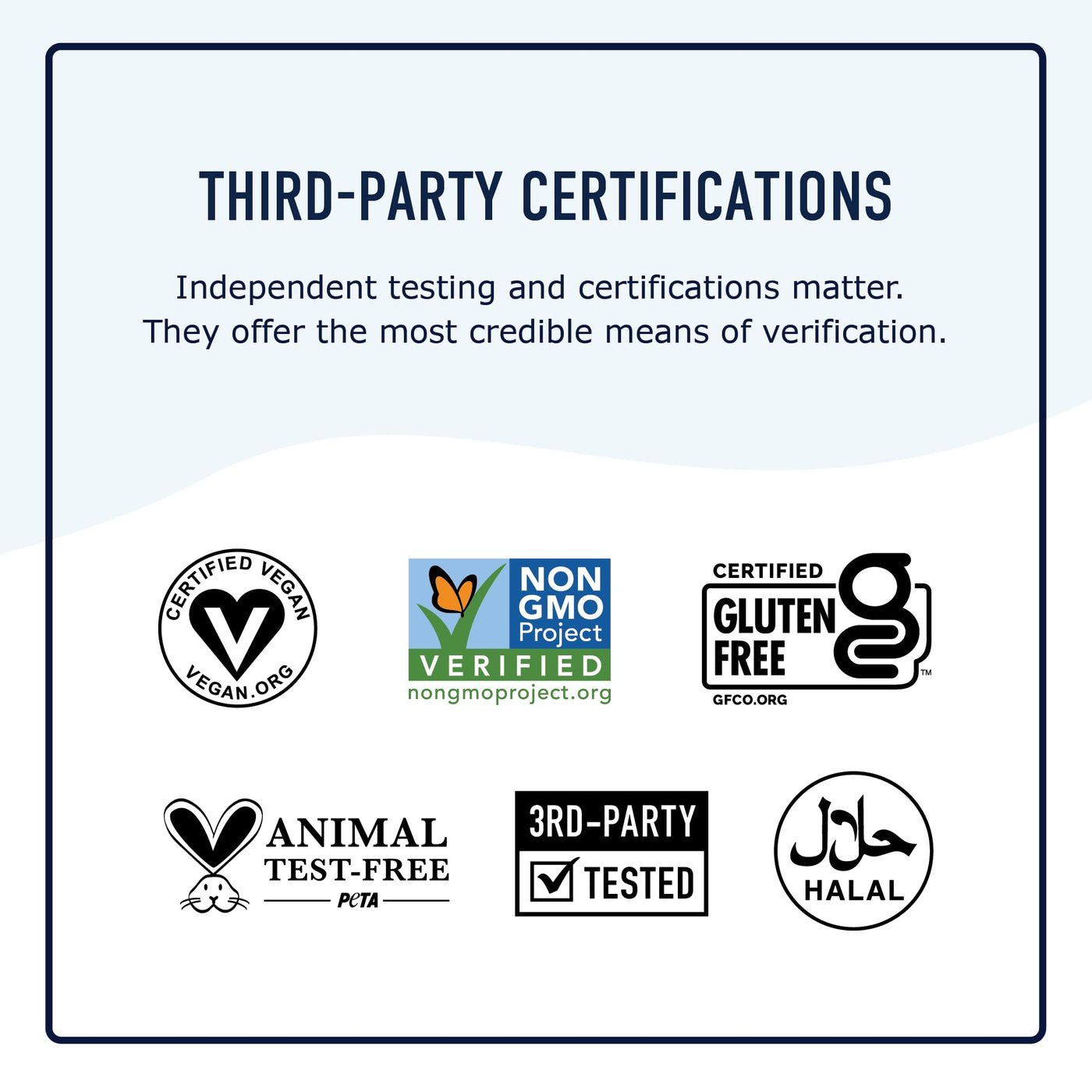 - UNQUESTIONED QUALITY - Third Party Tested, Gluten Free, Vegan, Non GMO, Soy Free, Dairy Free, and Cruelty Free; Manufactured in an FDA-Registered facility that adheres to GMP guidelines.