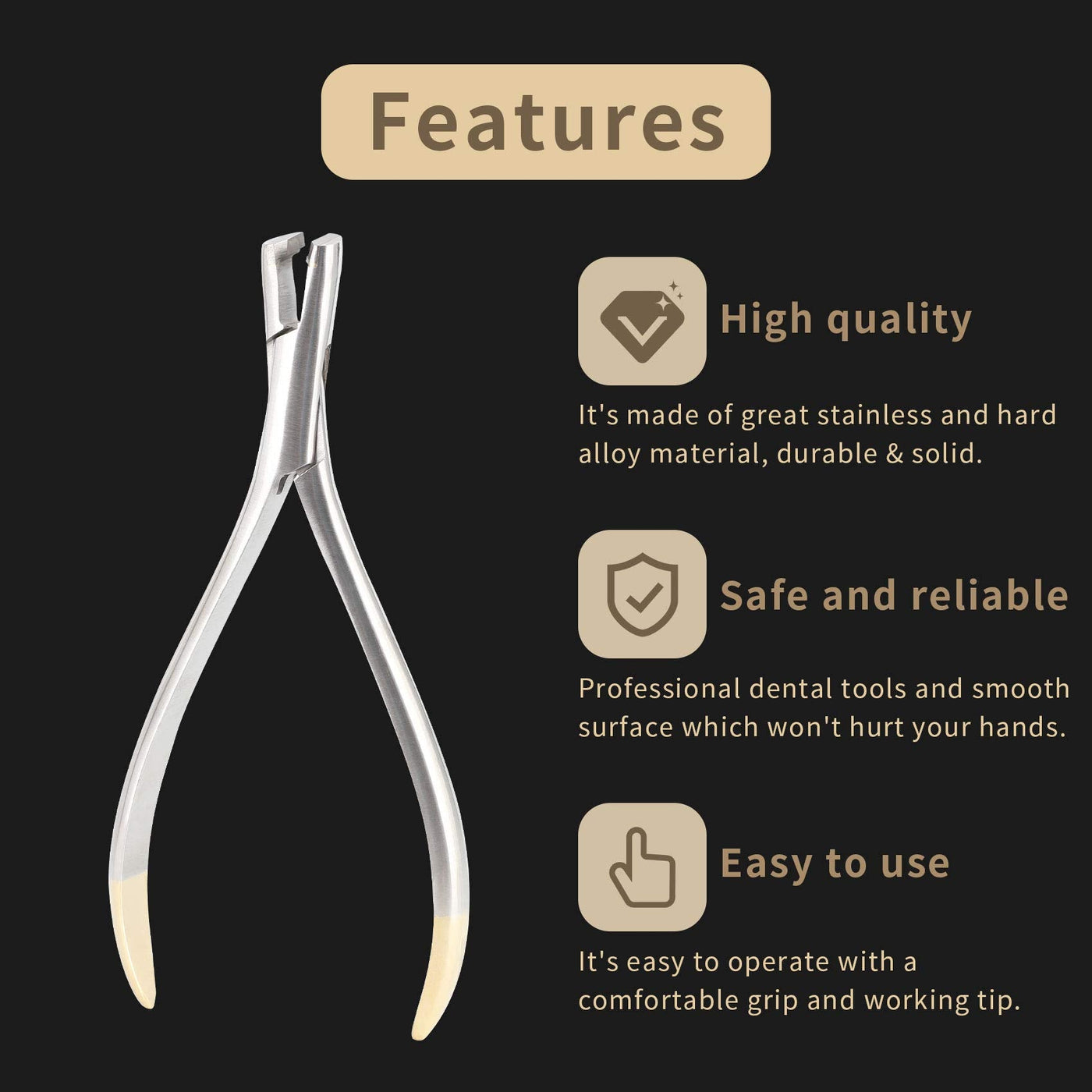 - Professional Tools: The orthodontic wire cutter for braces is a hand-held instrument designed to quickly and efficiently cutting the end of longer wires.