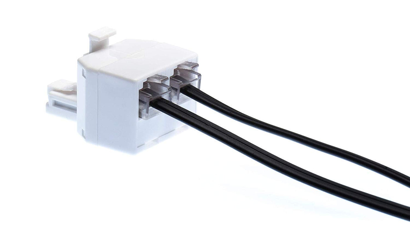 - Perfect For: Duplex connector allows a conversion between a single phone jack (RJ11) and two (RJ11) phone connections - Quickly connect two devices to one wall jack
