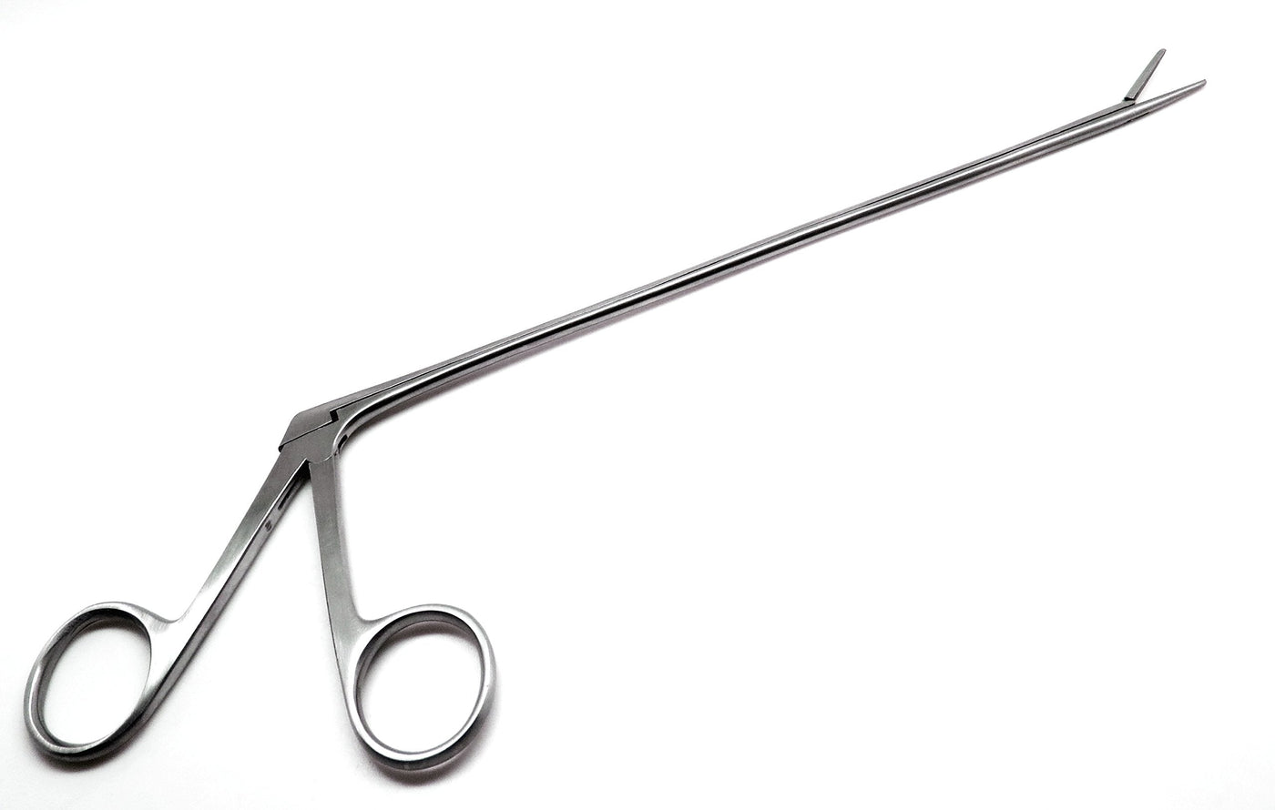 Alligator Forceps 8”. Jaws are 1.6cm Long. Net Weight is 1.59 oz. Hartmann Alligator Ear Forceps are a non-ratcheted, finger ring, ENT instrument commonly used for debridement and removing debris from the ear. The Hartmann alligator forceps or Hartmann foreign body forceps are named after the German physician Arthur Hartmann medical forceps for removing foreign bodies. It is used in addition to surgery mainly in ENT. A common name also is "Crocodile forceps". Alligator forceps are surgical instruments used for grasping small objects or removing items from small cavities in the body. A long shaft that is set at a 45-degree angle to the grip, and a small set of serrated jaws at the tip. The jaws bear resemblance to the snout of an alligator, giving rise to the name of the tool. When not in use, the serrated jaws remain open and only close when the handles are squeezed. This function allows for the forceps to be inserted into a small cavity, to partially open, and to then be closed on a lodged object, holding the object with a consistent application of pressure. The ability to fine tune the amount of pressure applied, combined with the long reach of the tool, makes the forceps ideal for removing foreign bodies or for moving sterile dressings in a hard-to-reach area after surgery.