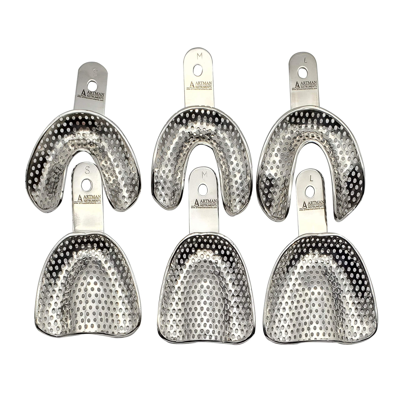 Edentulous Jaw Impression Trays Set of 6 Perforated Stainless Steel ARTMAN Brand