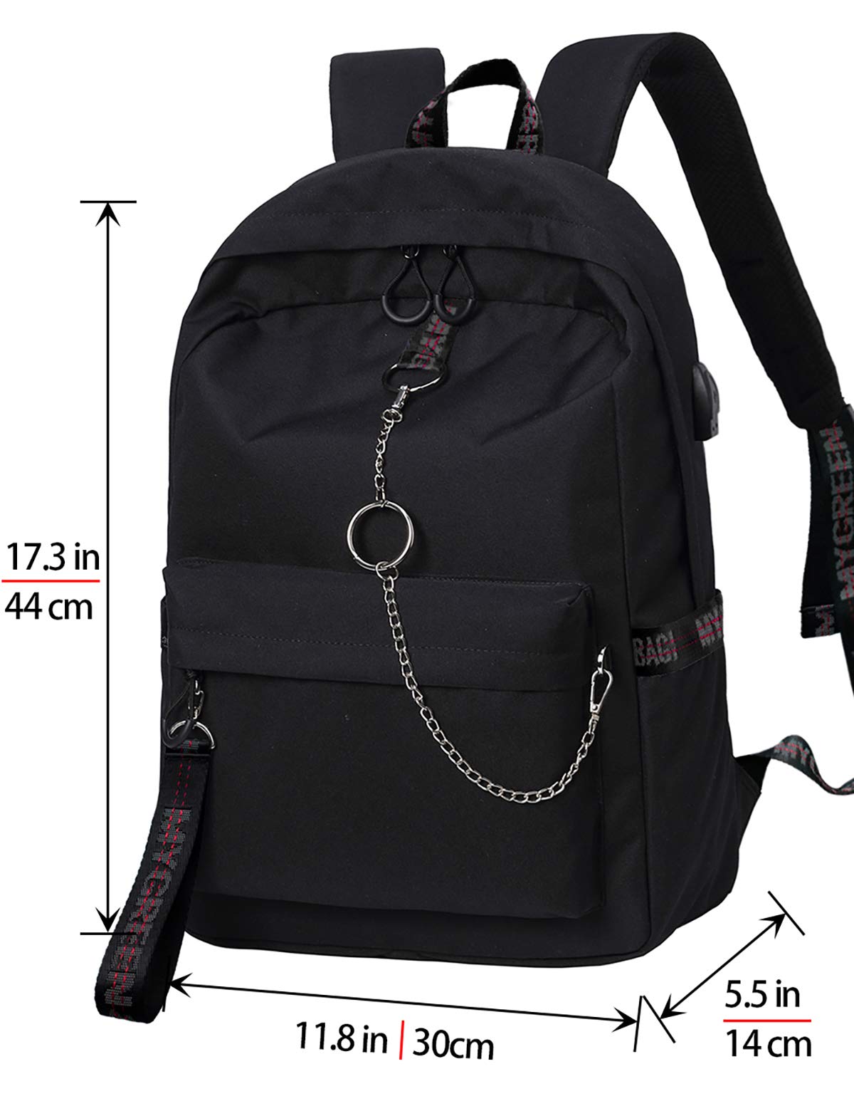 Ribbon Backpack Ribbon Backpack Backpack with Coin Purse Backpack with Coin Purse Ribbon Backpack with USB Port Ribbon Backpack with USB Port Material Polyester Polyester Polyester Polyester Polyester Polyester Dimensions 12.2x5.3x17 inch 12.2x5.3x17 inch 10.6x4.7x14.6 inch 12.2x5.5x17.3 inch 12.2x5.5x17.3 inch 10.6 x14.1 x4.3 inch Anti-theft Pocket ✓ ✓ ✓ ✓ Laptop Compartment ✓ ✓ ✓ ✓ ABOUT US: El-fmly's product line supports all people living in the city by innovating and expanding product development in response to customer requests. From busy business people with mobile phones, to students carrying notebooks and textbooks, to office workers carrying important documents, we provide bags suitable for all occasions. El-fmly FASHION BACKPACK FOR TRAVEL SCHOOL OUTDOOR 2 TYPE: WITH USB PORT / WITHOUT USB PORT 1. Materials: using high quality water resistant polyester. 2. Dimensions: 11.8"(L) x 5.5"(W) x 17.3"(H) 3. Comfort: The straps are firmly reinforced to ease the shoulder stress, the length can be adjusted to the suitable length for your needs. 4. Easy to organize: Multi-pocket design can meet various needs. 5. Unique Design: With delicate chains and webbing, it is very suitable for boys and girls who are looking for individuality and fashion. Read more Construction Main room 1 (Contain 2 pen slot, 2 open pocket, 1 laptop pocket, 1 zipper pocket, 1 key holder).Side pocket 2 (It can hold water bottle or folding umbrella).Front zipper pocket 1 (Daily use small items can easy to take out).The USB type comes with 1 Back zipper pocket , 1 Luggage strap. Read more