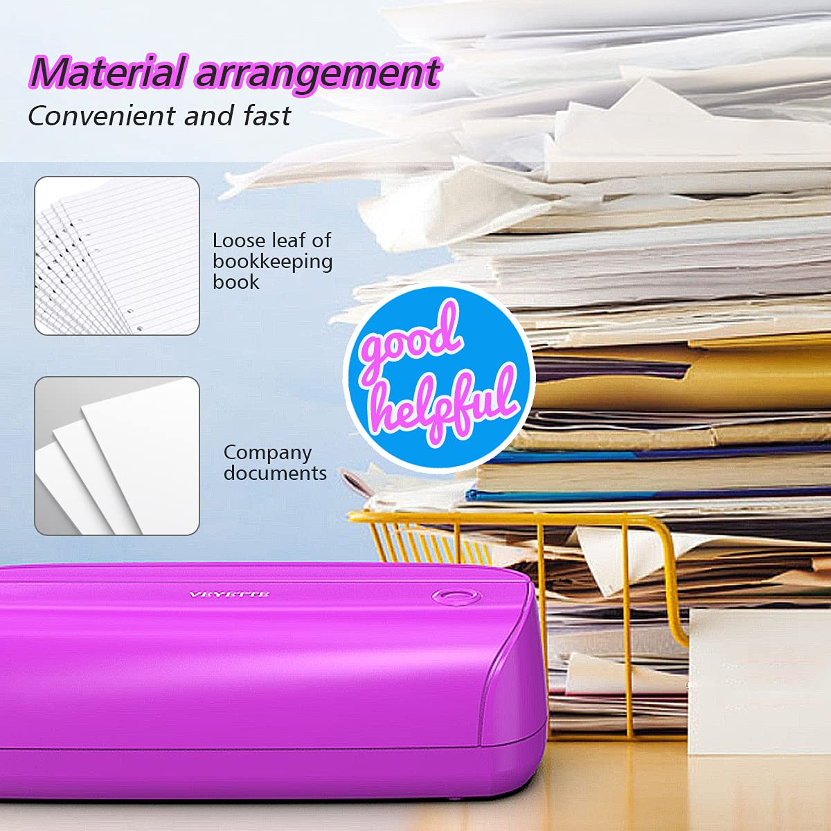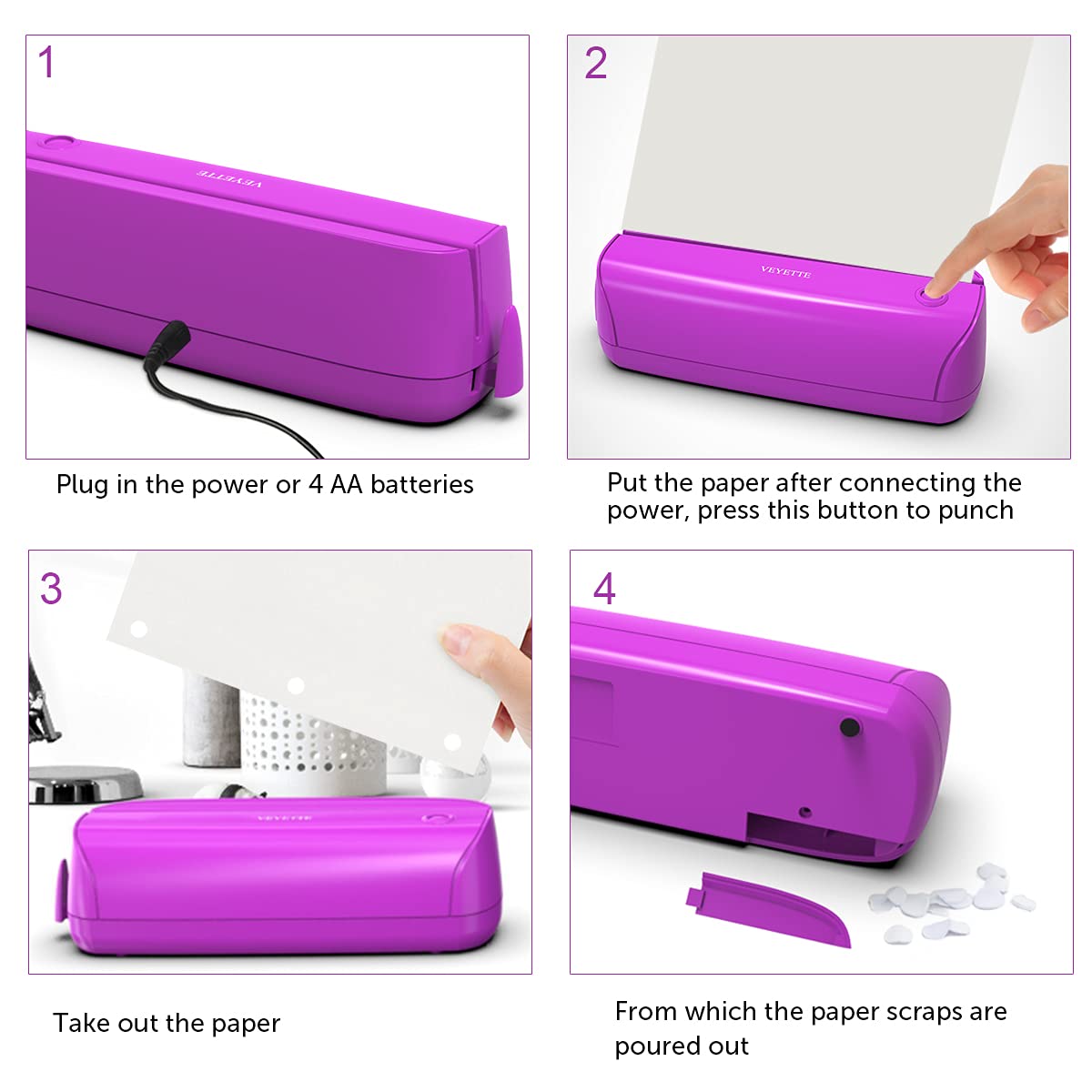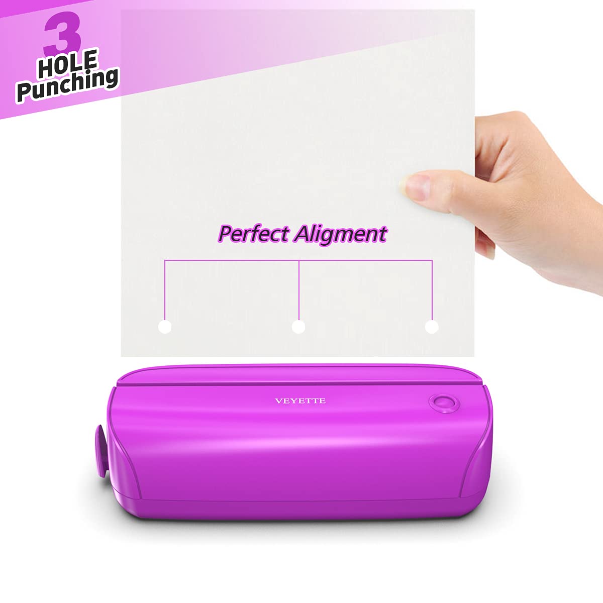 Electric 3 Hole Paper Punch, VEYETTE Paper Puncher with Adapter for Office School Studio, 20 Sheet Capacity, AC or Battery Purple