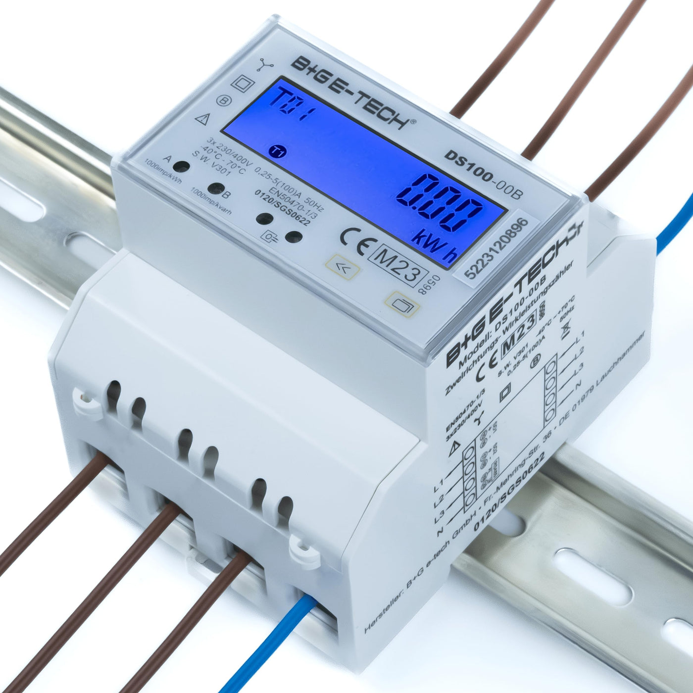 Electricity meter [DS100] 3 phase bi-directional three-phase current meter for DIN rail with RS485 Modbus-RTU, DLT654, S0 pulse or DI signal input | DS100-00B (with 2x S0 and RS485) DS100-00B (with 2x S0 and RS485)