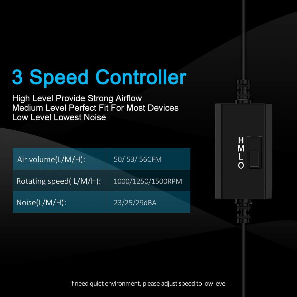 ELUTENG 120mm Fan with 3 Speed 5V USB Powered 120mm Case Fan 1500PRM Gaming PC Fan Portable Cooling Fan Suitable for Tablet TV Receiver Router DVR Play Station Xbox Computer and More